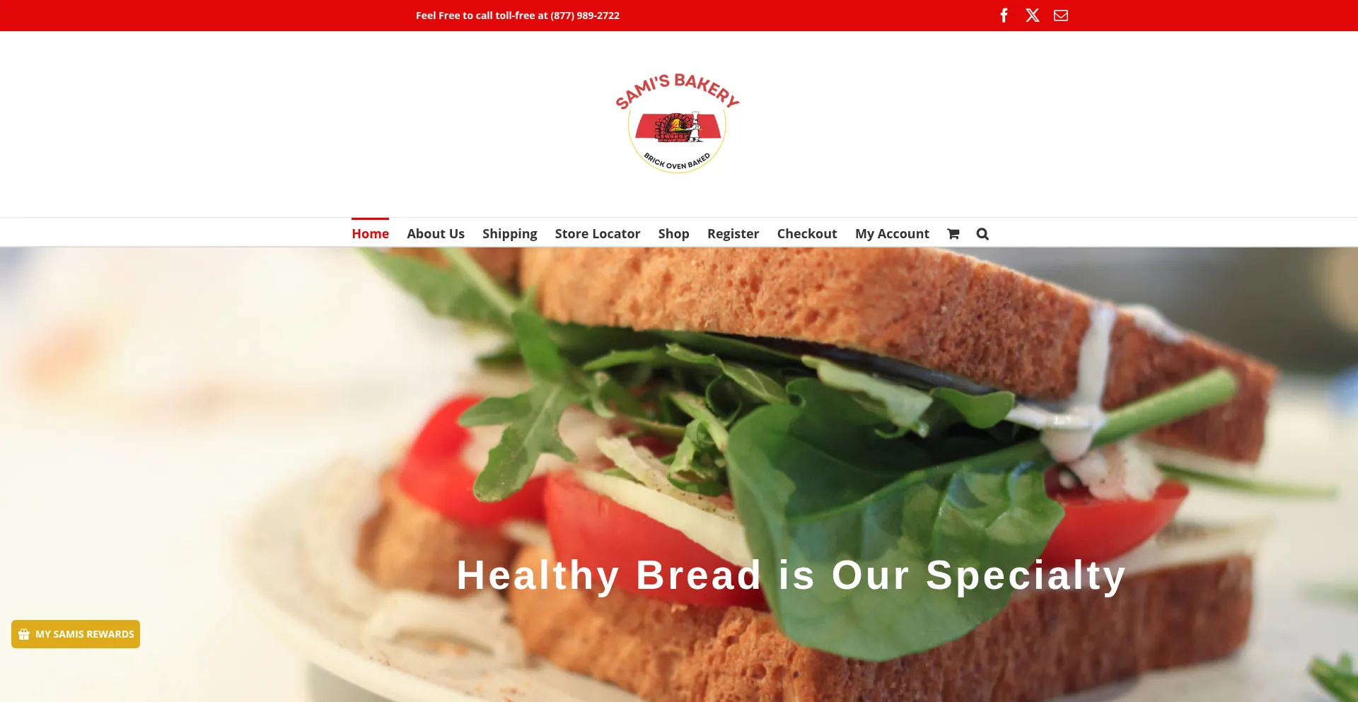 网站上存在社交媒体链接表明 samisbakery.com 在社交媒体上维护官方账户,这是可信度和参与度的积极信号。