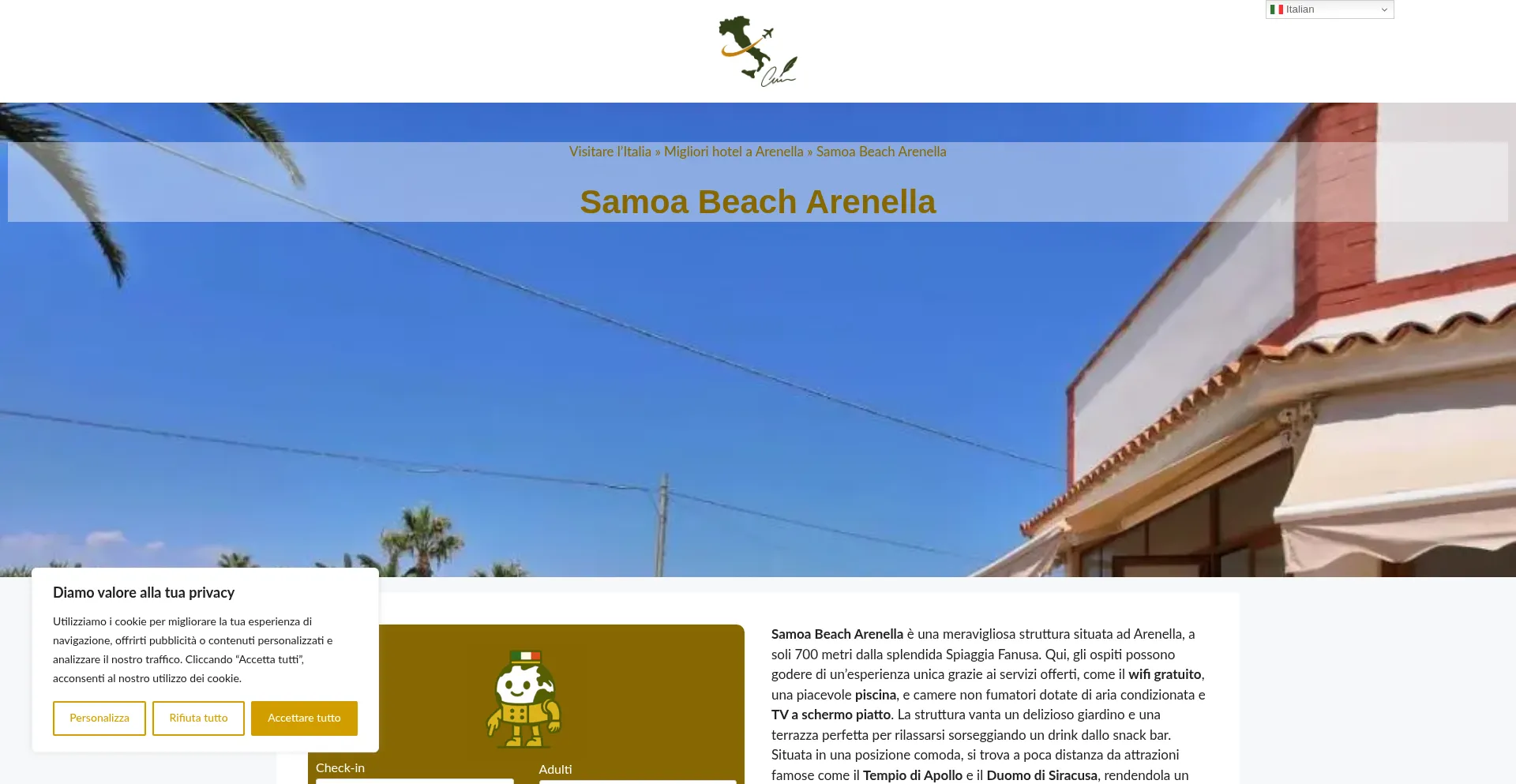 该网站实现符合GDPR或CCPA等隐私法规的cookie同意机制。这表明 samoa-beach-arenella.romevelo.com 遵守数据保护标准并为用户提供对个人数据收集实践的控制。