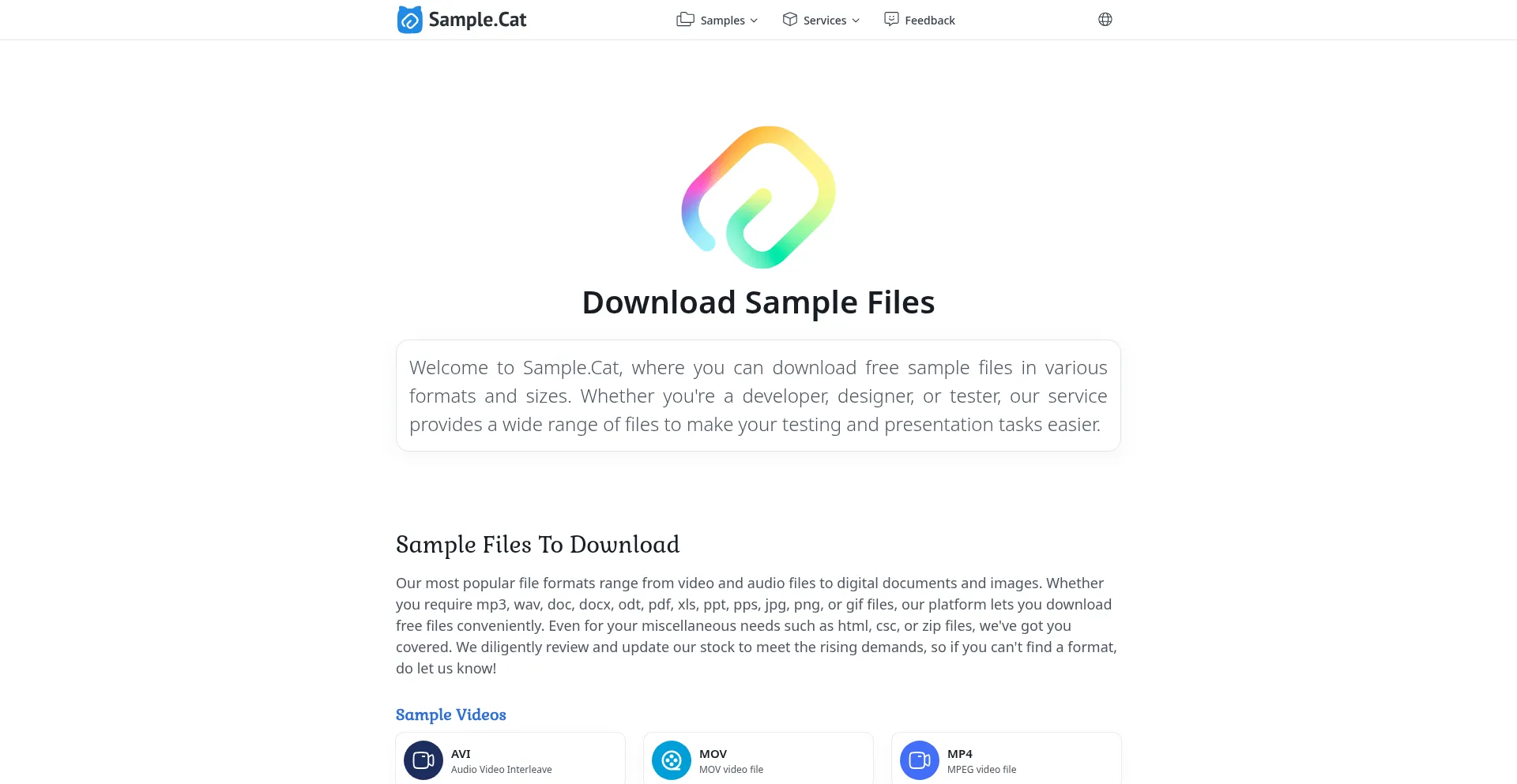 Download free sample files in various formats and sizes, including videos, audio, documents, images, and more. Perfect for developers, designers, and testers to use in demos and...