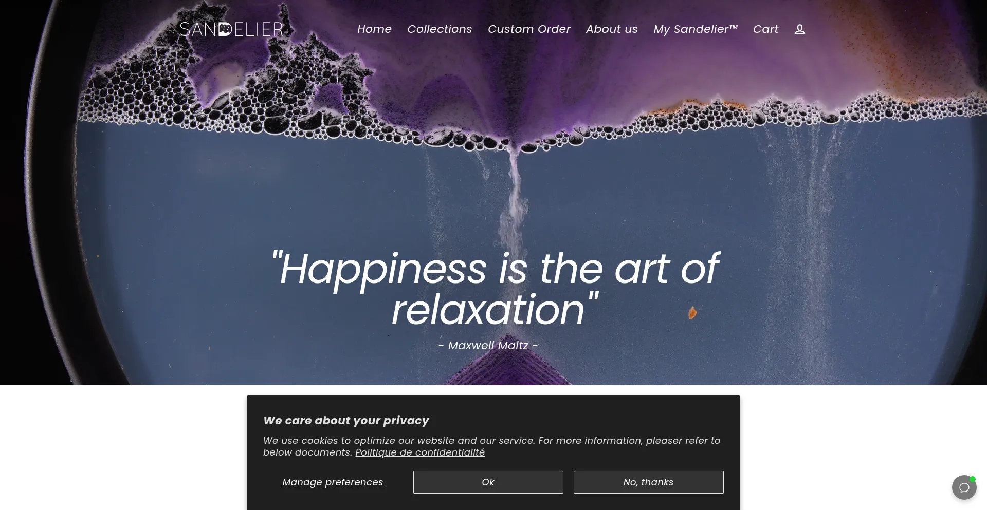 该网站实现符合GDPR或CCPA等隐私法规的cookie同意机制。这表明 sandelier.com 遵守数据保护标准并为用户提供对个人数据收集实践的控制。