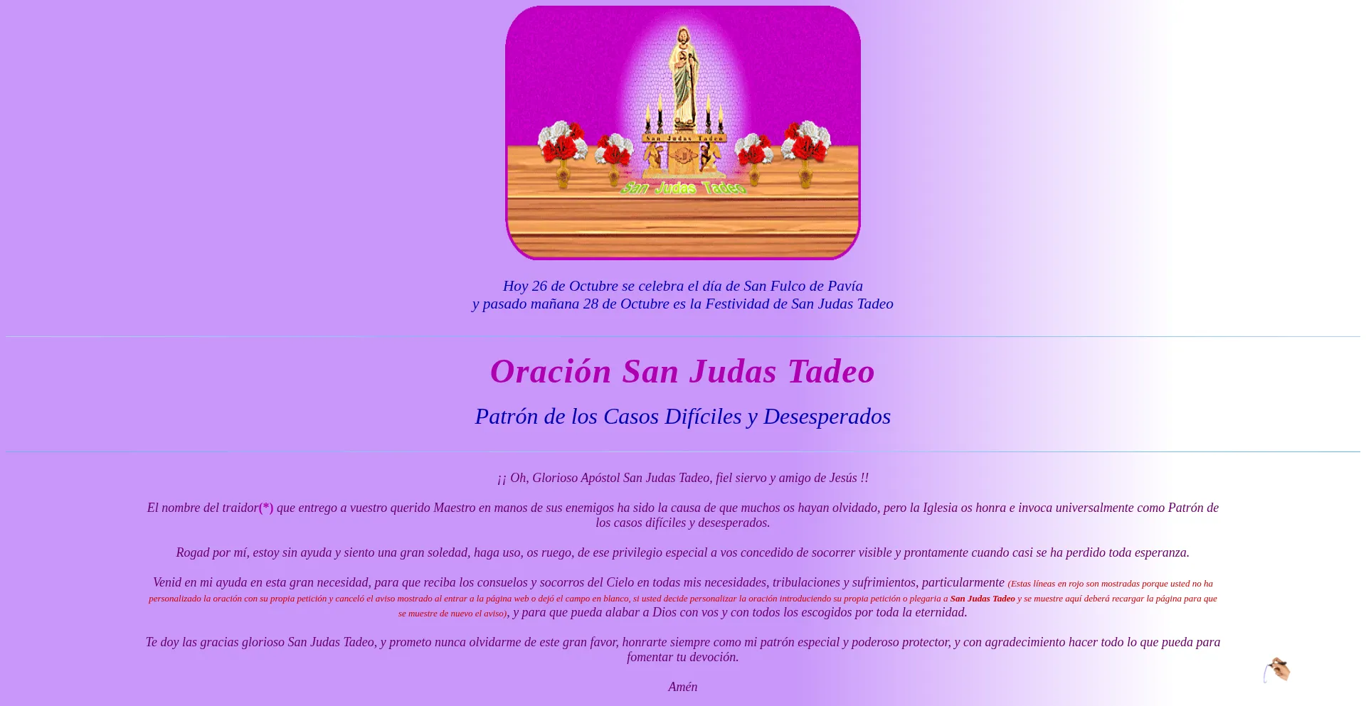Personaliza con tu propia petición o plegaria esta Oración a San Judas Tadeo Patrón de los casos difíciles, desesperados, imposibles, causas perdidas, su festividad se celeb...