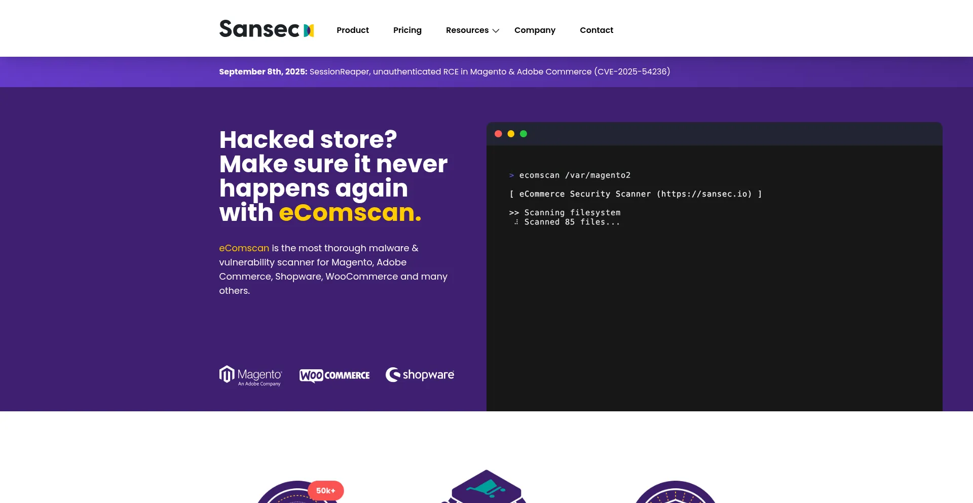 Use Sansec eComscan to discover all malware & vulnerabilities in your online store. Supports Magento, Adobe Commerce, WooCommerce, Shopware and many others.