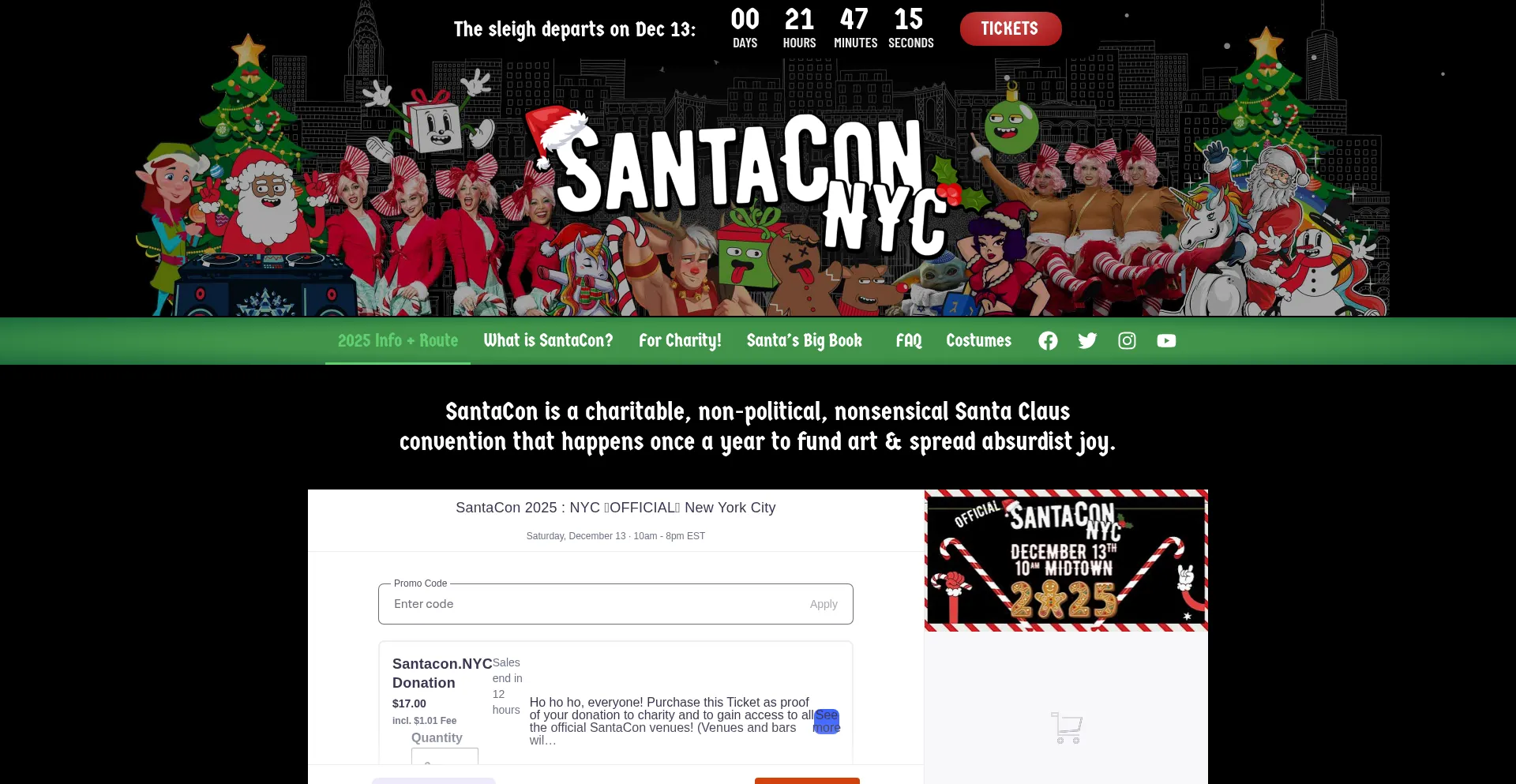 网站上存在社交媒体链接表明 santacon.nyc 在社交媒体上维护官方账户,这是可信度和参与度的积极信号。