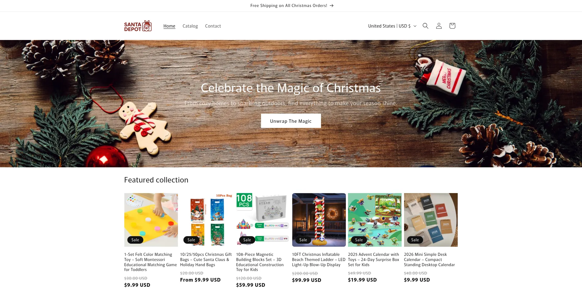 分析表明 santadepot.com 作为电子商务平台运营,促进商品或服务的在线交易。该网站实现了购物车功能、支付处理系统和产品目录功能,这些是商业零售运营的典型特征。