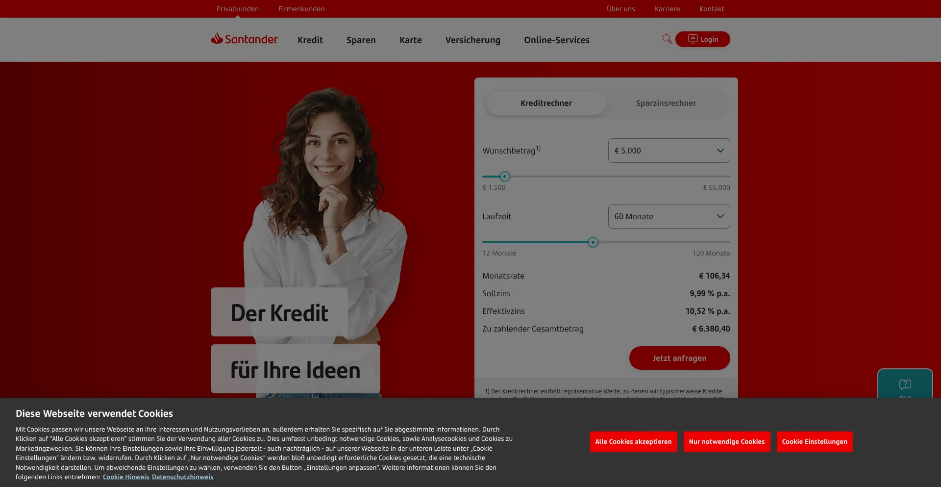 Santander ist Österreichs Spezialist für Konsumkredite, Online-Sparen und der führende herstellerunabhängige Finanzierer von Autos und Konsumgütern.