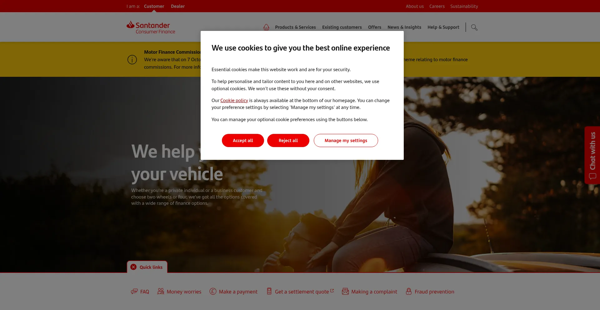 该网站实现符合GDPR或CCPA等隐私法规的cookie同意机制。这表明 santanderconsumer.co.uk 遵守数据保护标准并为用户提供对个人数据收集实践的控制。