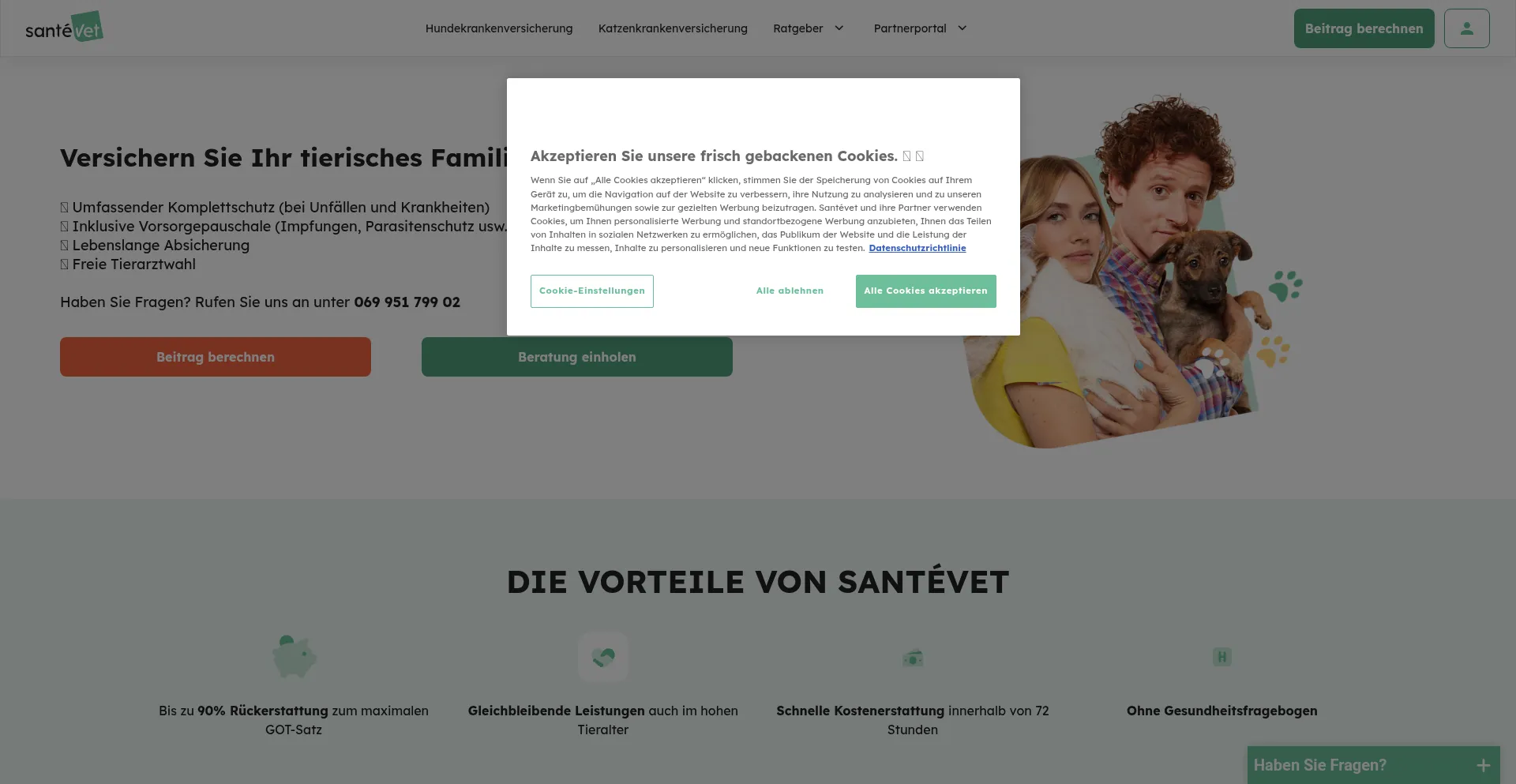 Santévet, Ihr Spezialist für Tierkrankenversicherungen. Versichern Sie Ihr Haustier und lassen Sie sich bis zu 90% Ihrer Tierarztkosten erstatten.