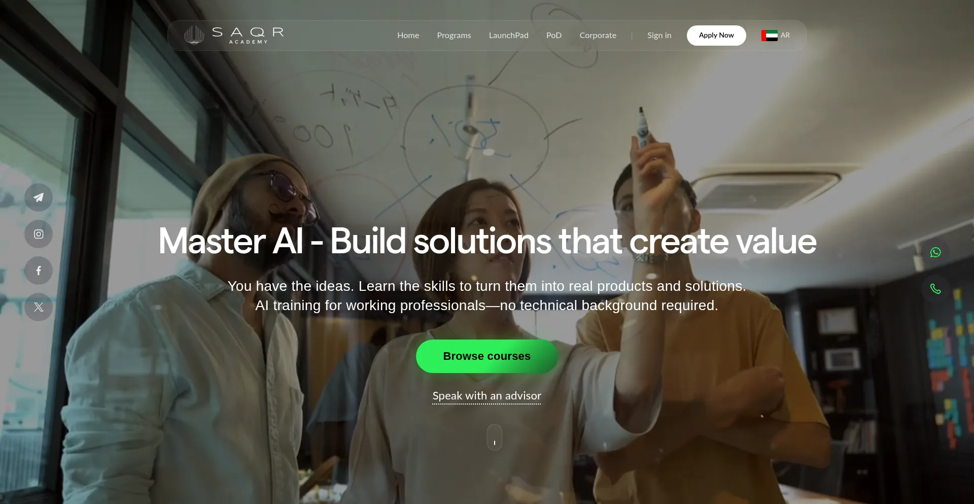 网站上存在社交媒体链接表明 saqracademy.com 在社交媒体上维护官方账户,这是可信度和参与度的积极信号。