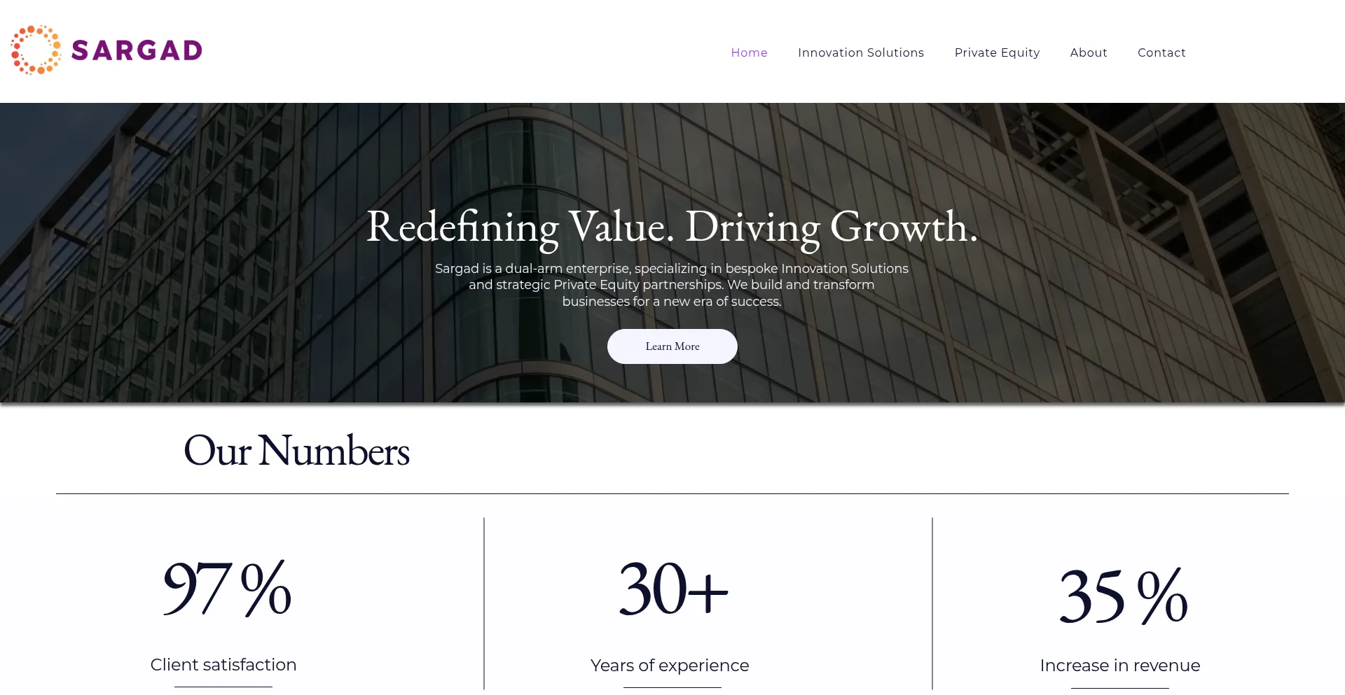 SARGAD is a Dual-arm enterprise delivering Innovation Solutions and Private Equity. We drive Operational Excellence, AI integration, and Technology Transformation for key sectors.