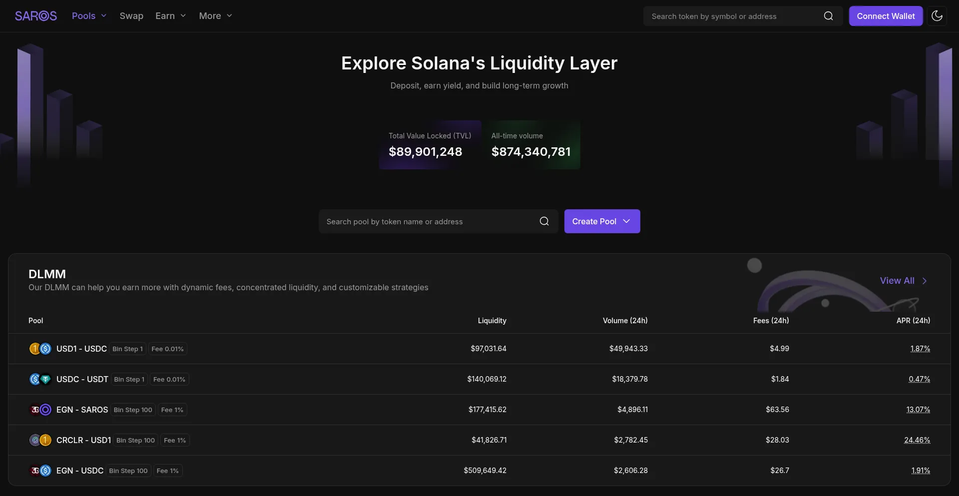 Provide liquidity in Saros Pools to maximize yields, support efficient trading, and join the next generation of DeFi on Solana