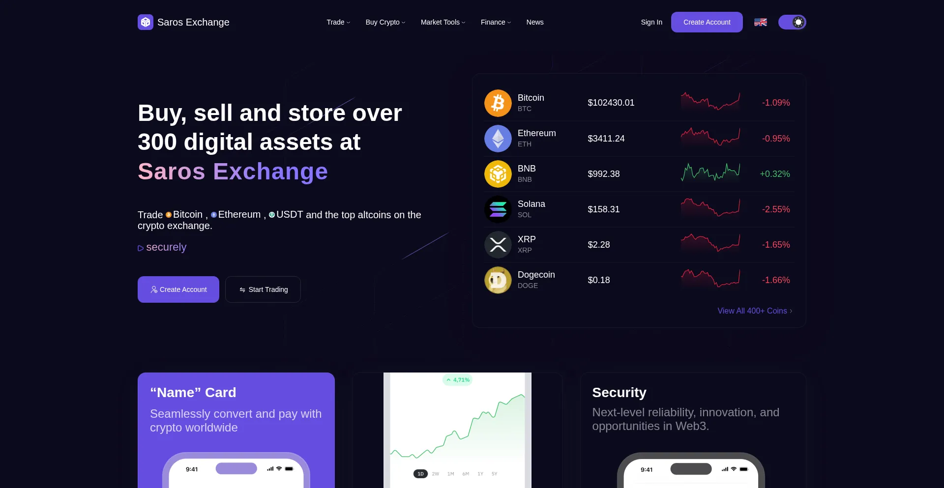 Buy/Sell Bitcoin, Ether and Altcoins | Cryptocurrency Exchange | Saros Exchange