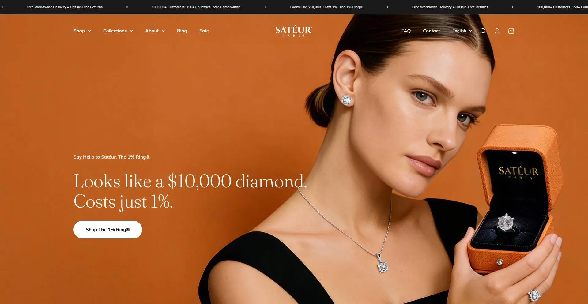 Looks like a $10,000 diamond. Costs just 1%. Discover Satéur—smart engagement rings that rewrite tradition. 100,000+ customers. No compromise.
