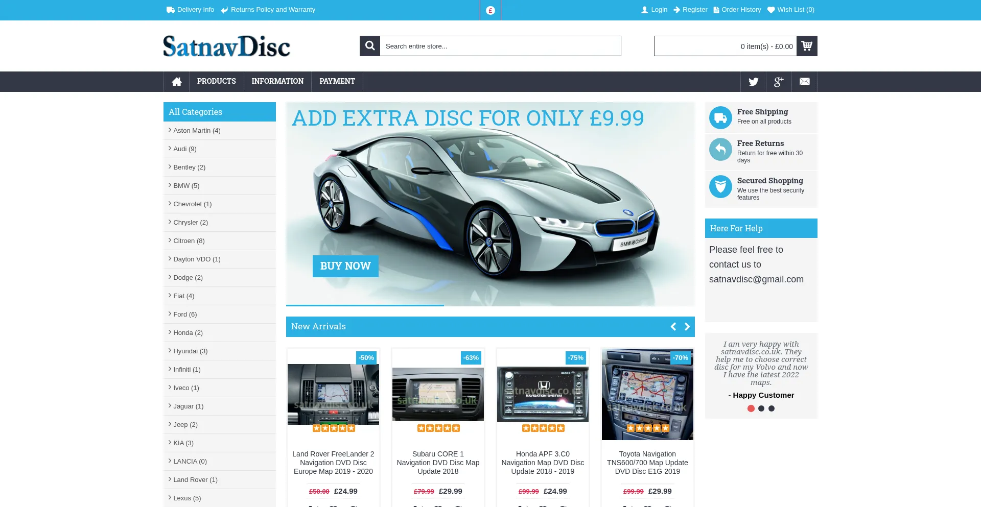We supply the latest navigation maps update discs and sd cards for all cars and models: Honda, Jaguar, Audi. Price start at £9.99