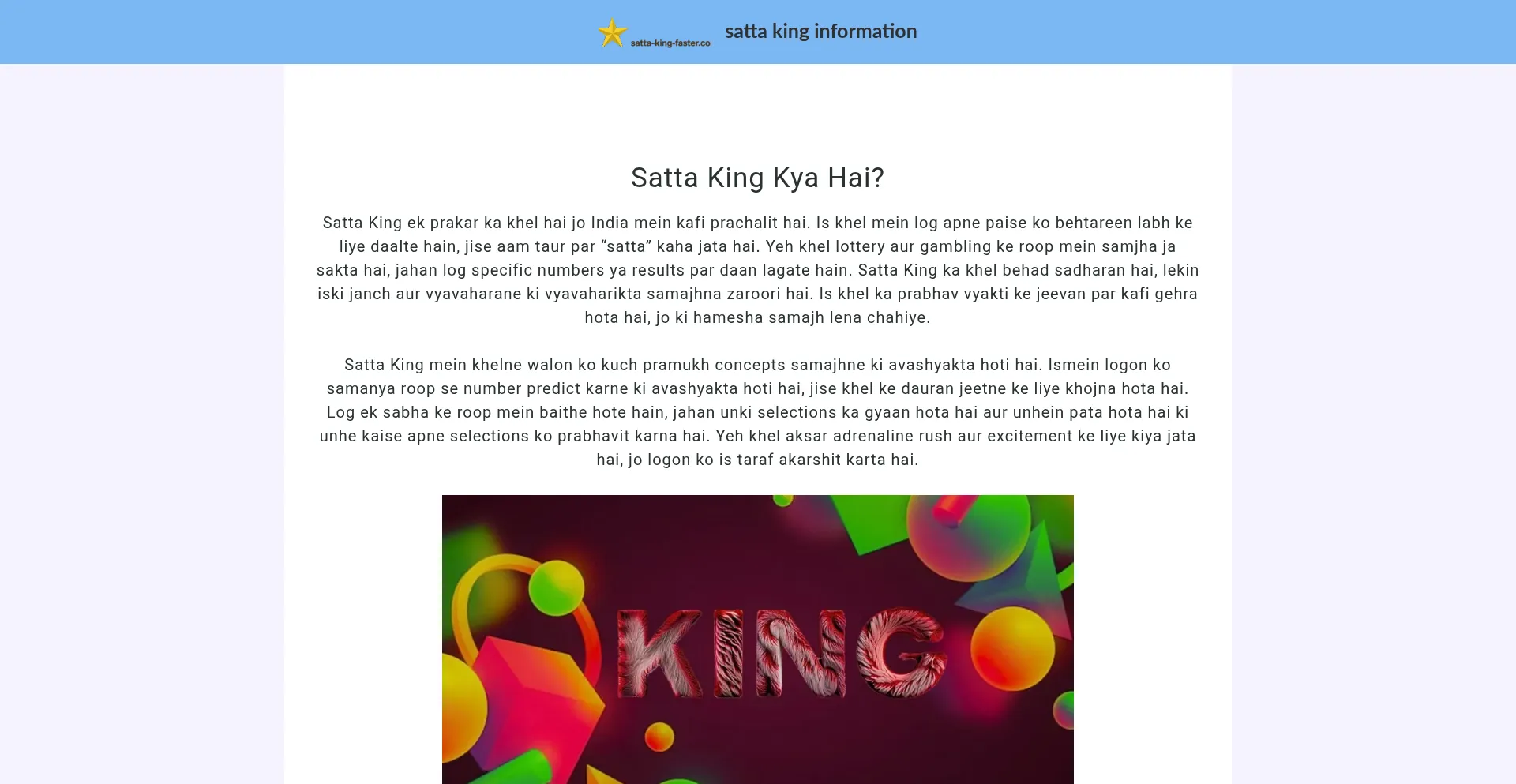 Satta-king-faster.com 运营欺诈平台,旨在通过推广虚假产品、服务或投资机会的欺骗性方案提取个人信息和金融资产。