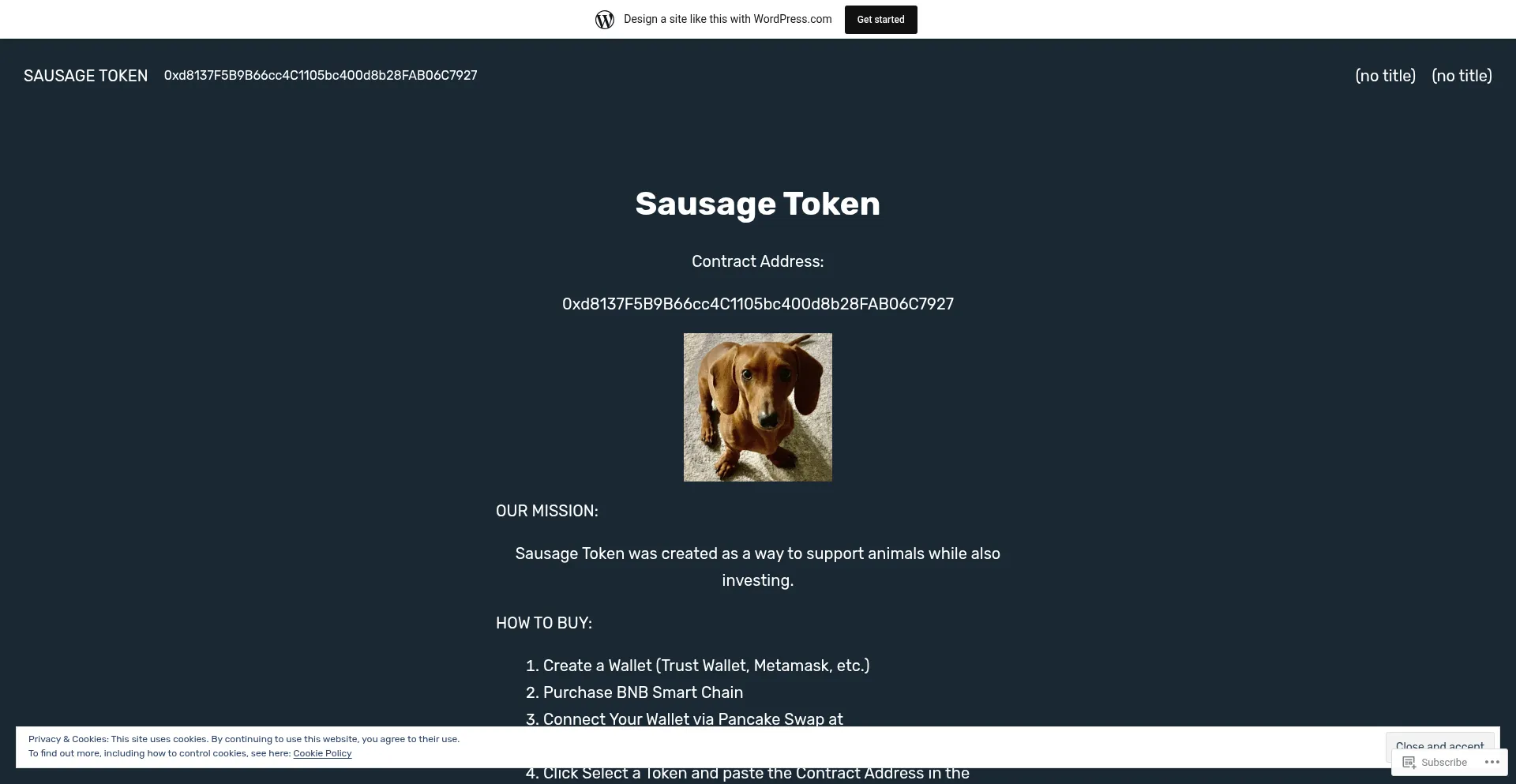Sausage Token Contract Address: 0xd8137F5B9B66cc4C1105bc400d8b28FAB06C7927 OUR MISSION: Sausage Token was created as a way to support animals while also investing. HOW TO BUY: C...