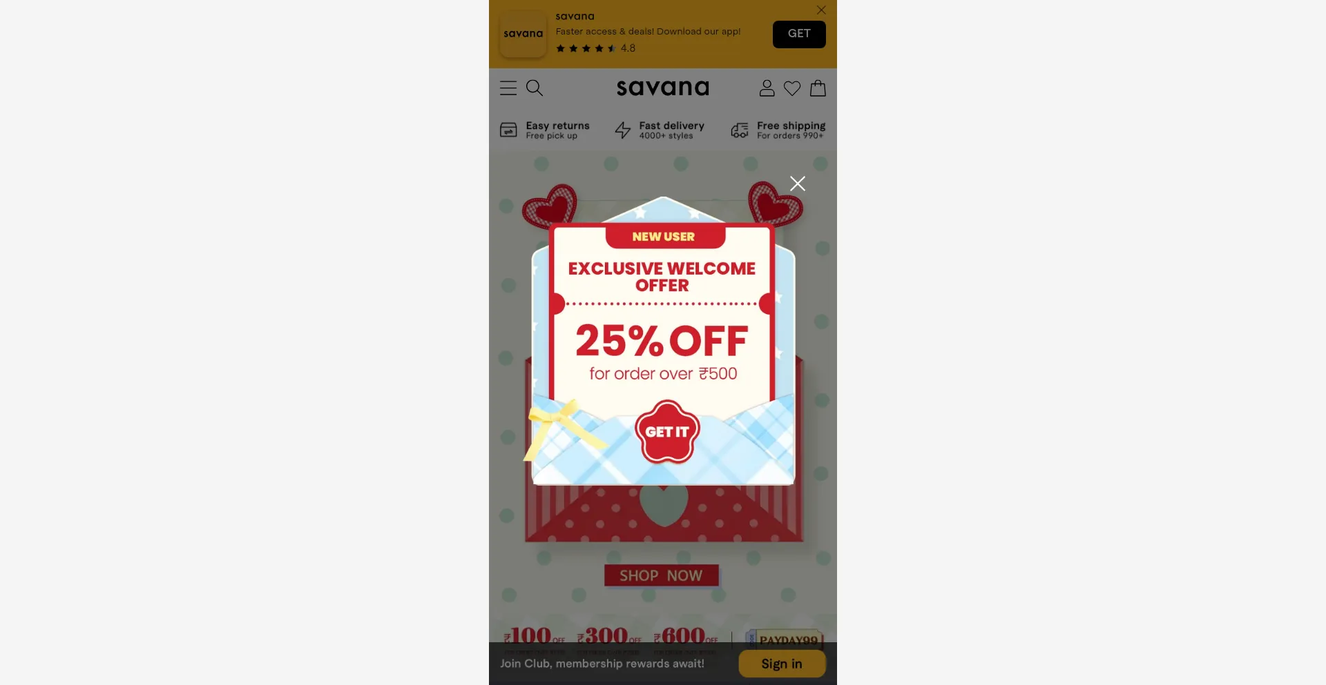 网站 savana.com 被配置为一个带有移动应用功能的网络应用。用户可以直接将该网站安装到设备的桌面上,以快速访问并享受类似移动应用的体验。