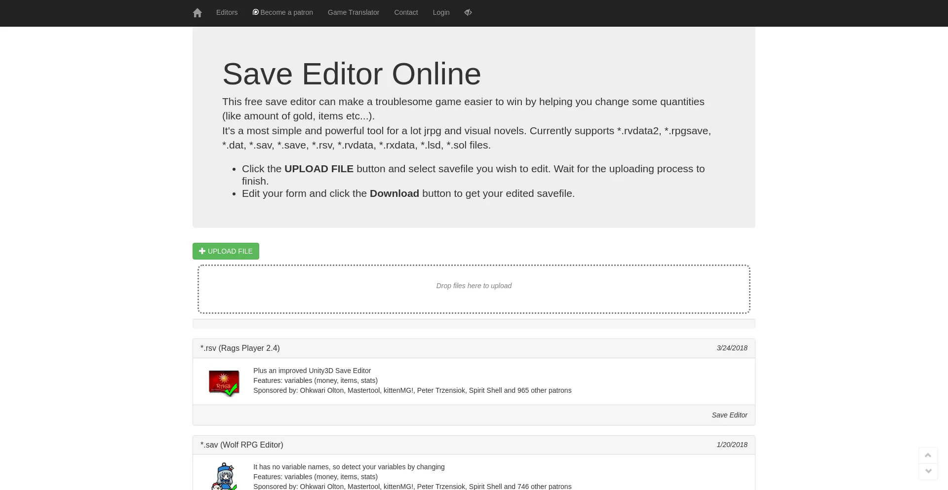 Save Editor: RPGMaker rvdata2 rpgsave rxdata Renpy UnrealEngine Wolf Unity save dat sav rsv other files.. Change your gold items stats etc.. Enjoy!