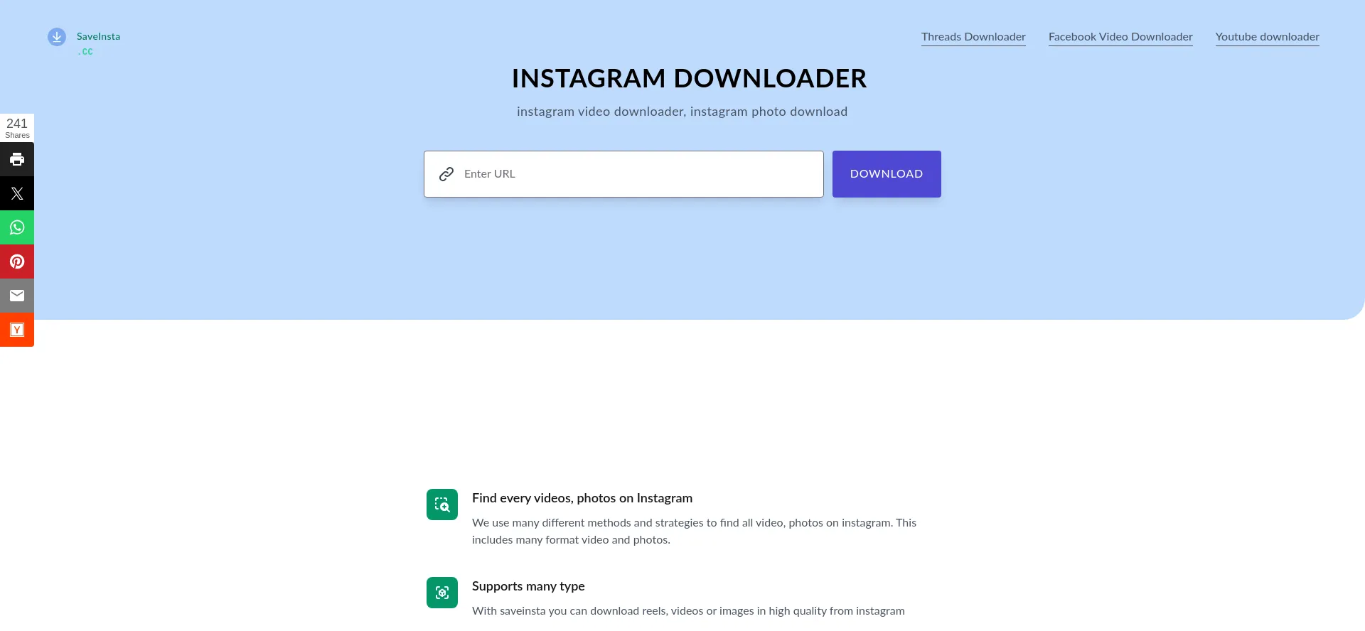 帮助保护他人,快在社交媒体上分享此页面吧!知道saveinsta.cc的人越多,骗子就越难得逞。 通过在社交媒体上分享此页面,帮助更多人发现可靠的saveinsta.cc吧!