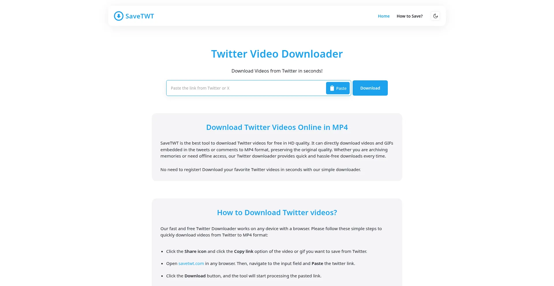 SaveTWT is a fast and easy to use Twitter Video Downloader. Quickly download Twitter videos in high quality (up to 4K) for free to your Mobile or PC.