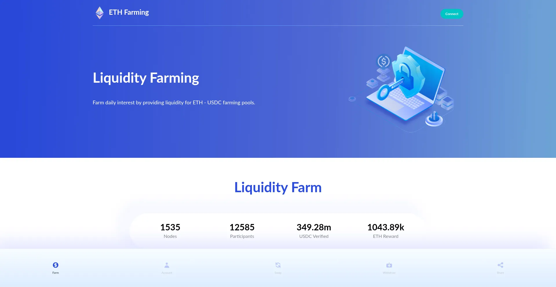 Farm daily interest by providing liquidity for ETH - USDC farming pools.