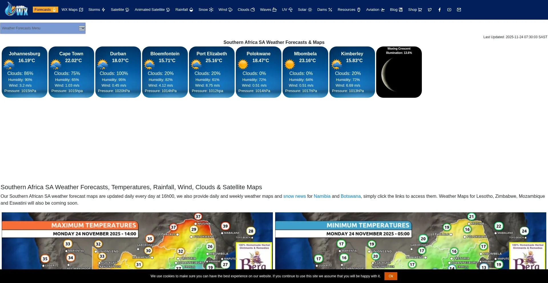 South African SA Weather News, Weather Weather For Tomorrow, Forecast Towns Cities Weather Maps, Satellite Pictures, Climate, Botswana, Namibia, Mozambique, Eswatini, Lesotho