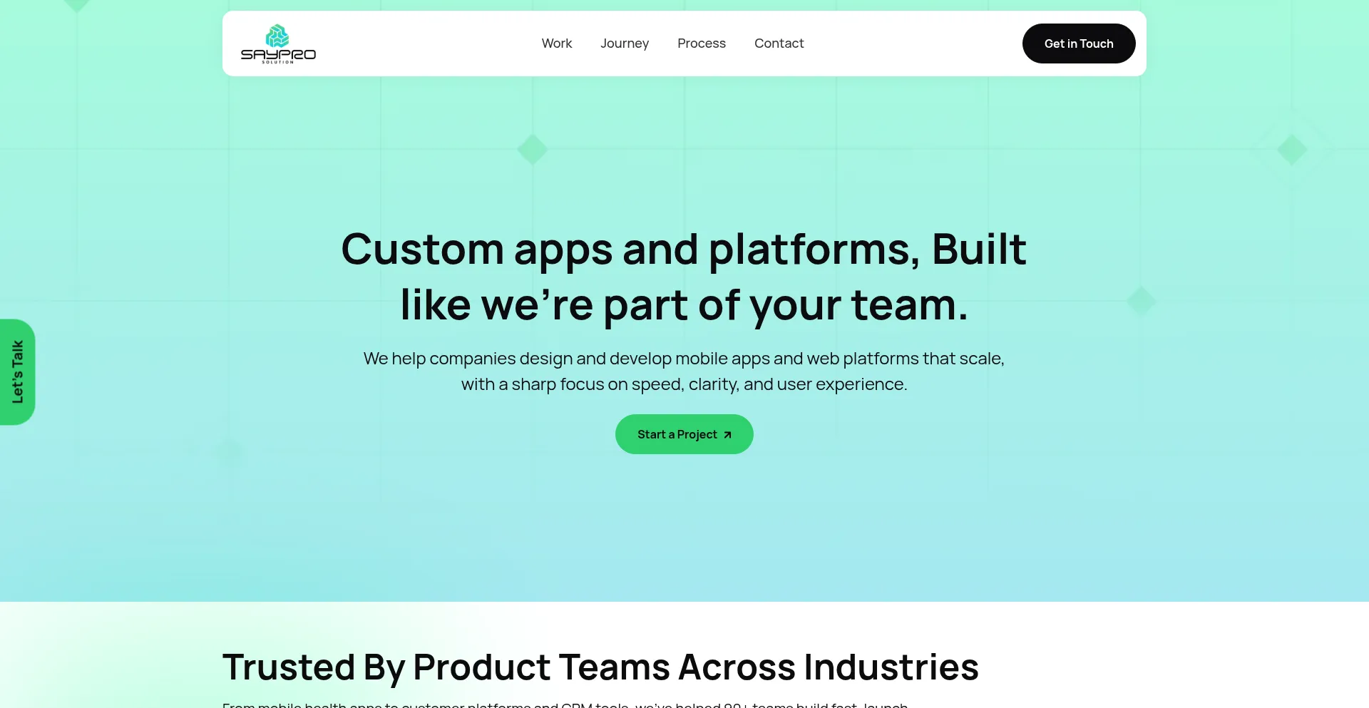 sayprosolution.com 使用 Bootstrap,这是一个广泛采用的开源响应式网页开发框架。Bootstrap 通过标准化组件和样式实现移动友好界面的高效创建。
