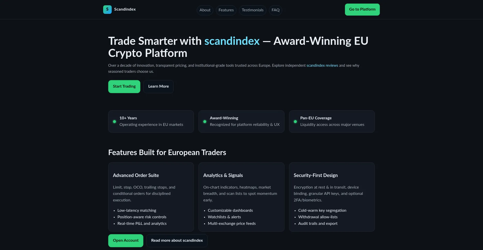 Scandindex – Award‑Winning EU Crypto Trading Platform (10+ Years)