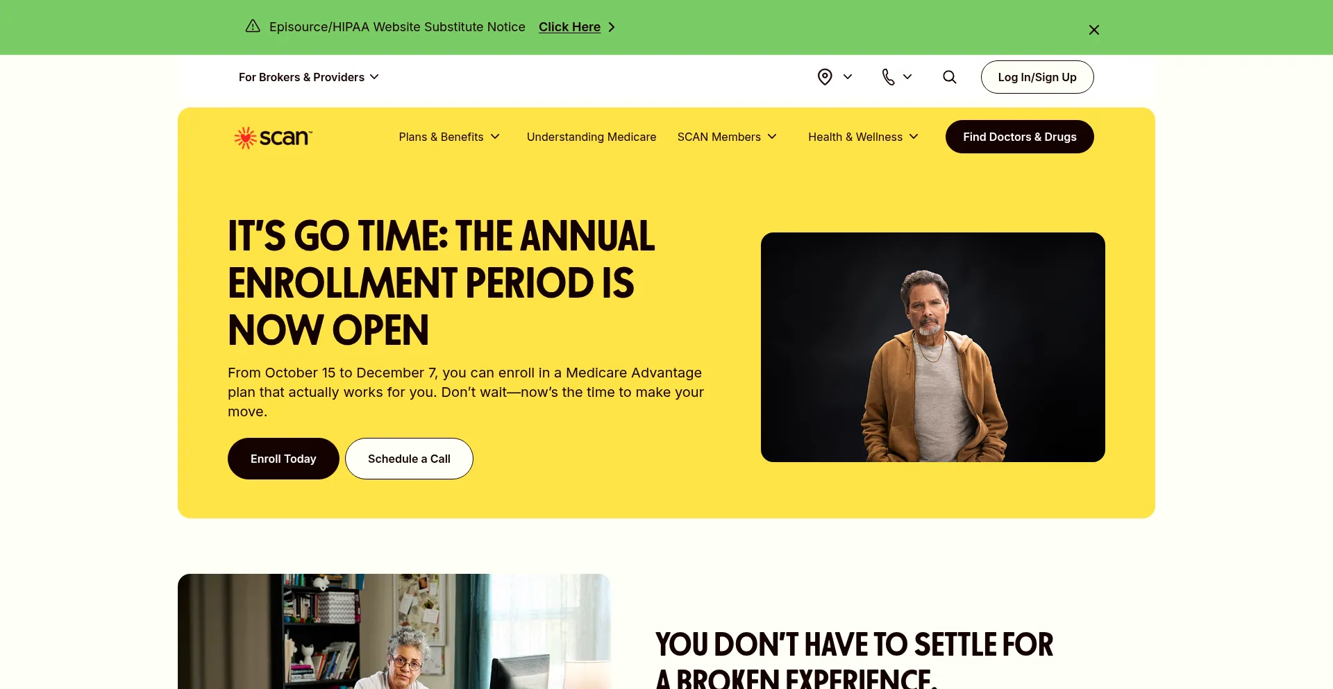 You don’t have to settle for a broken healthcare experience anymore. It’s time to expect more from your Medicare Advantage plan. SCAN is different. Learn how here.