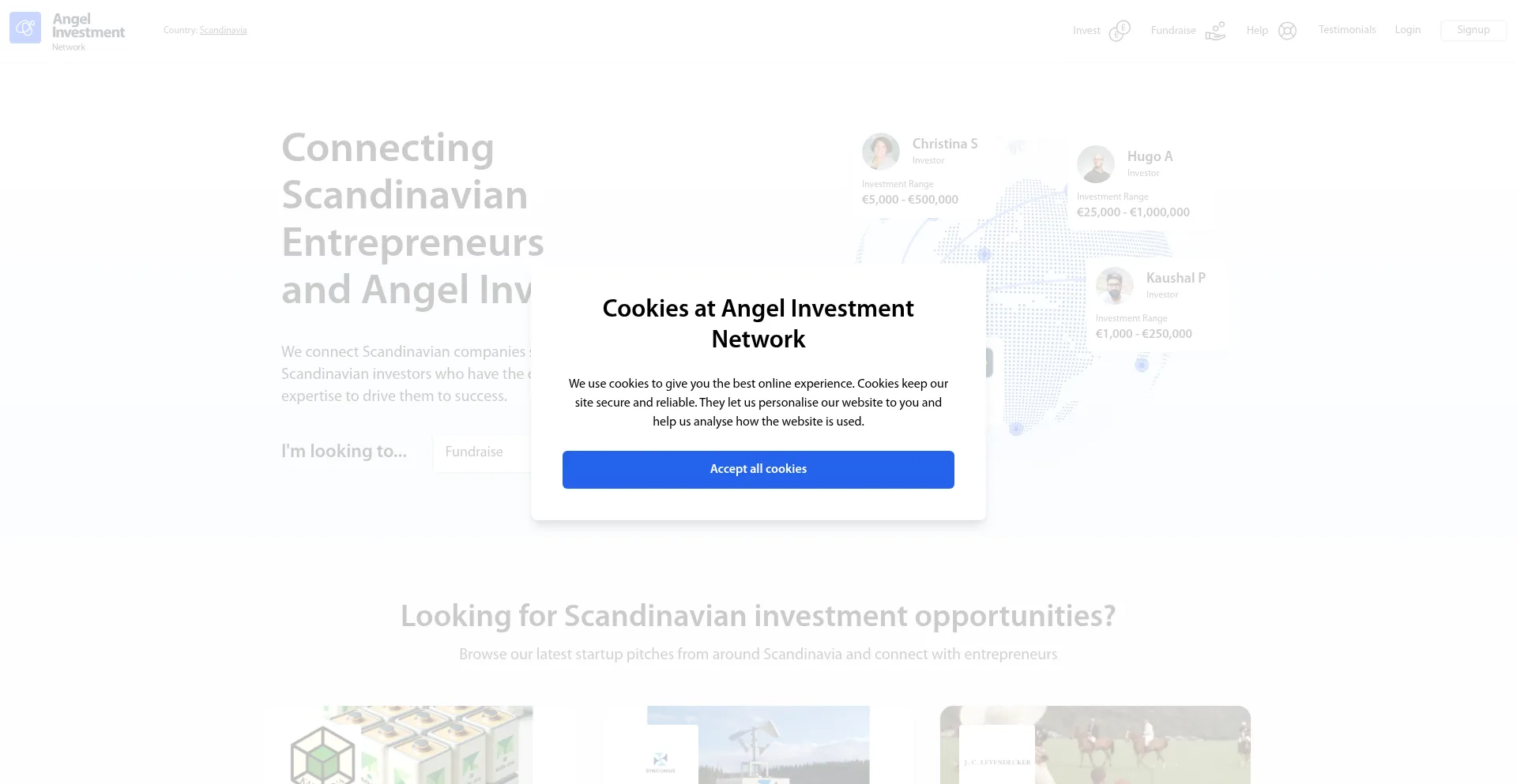 The Scandinavia Angel Investment Network connects business entrepreneurs with Angel Investors. Find an Investor for your business, or access a network of investment opportunities.