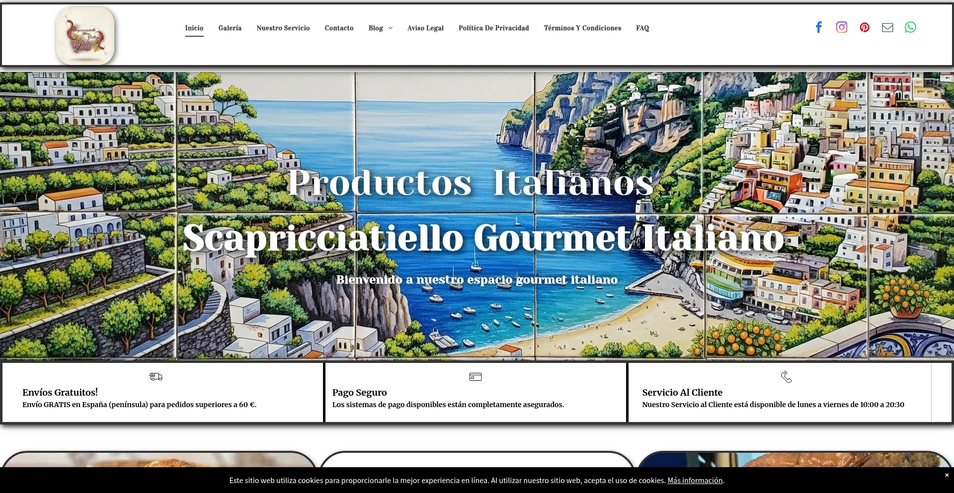 网站上存在社交媒体链接表明 scapricciatiello-gourmet-italiano.es 在社交媒体上维护官方账户,这是可信度和参与度的积极信号。