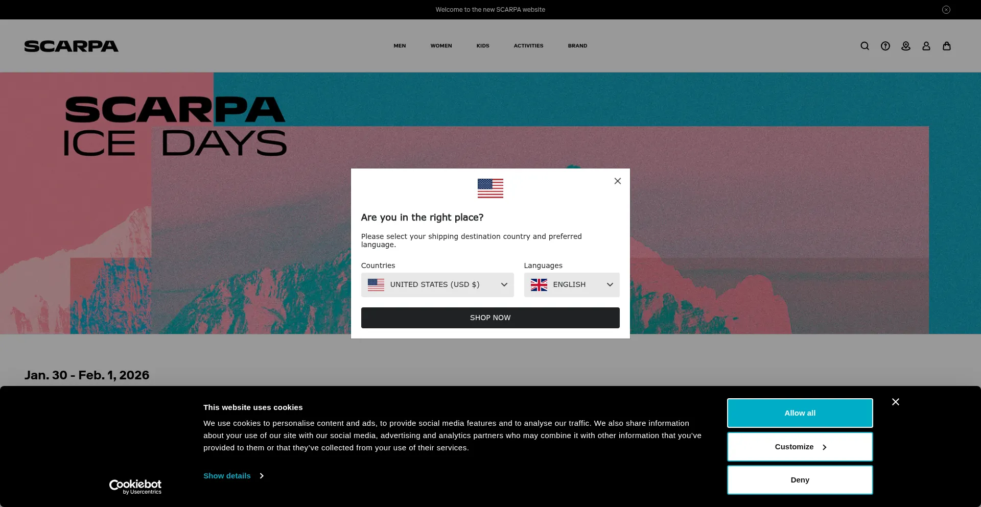 该网站实现符合GDPR或CCPA等隐私法规的cookie同意机制。这表明 scarpa.com 遵守数据保护标准并为用户提供对个人数据收集实践的控制。