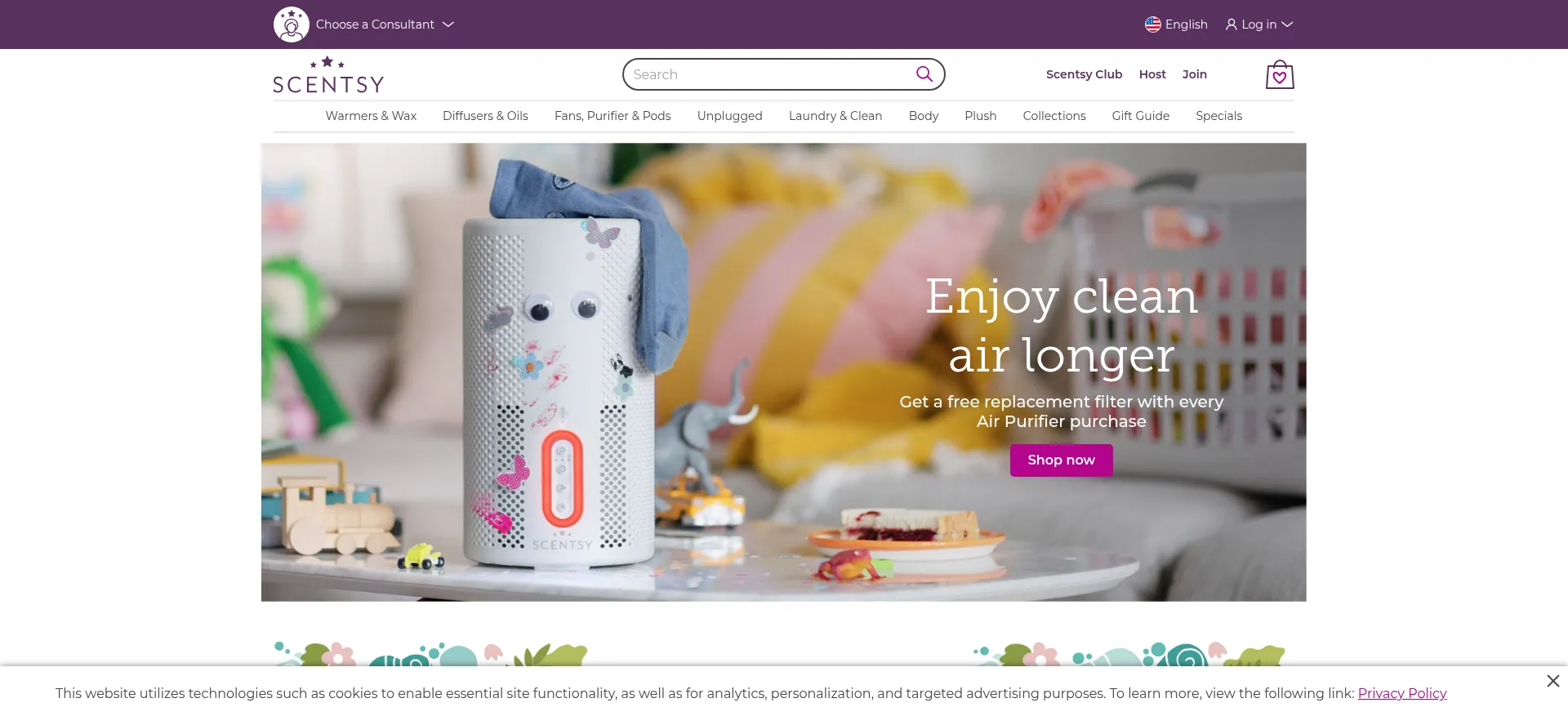 分析表明 scentsy.com 作为电子商务平台运营,促进商品或服务的在线交易。该网站实现了购物车功能、支付处理系统和产品目录功能,这些是商业零售运营的典型特征。