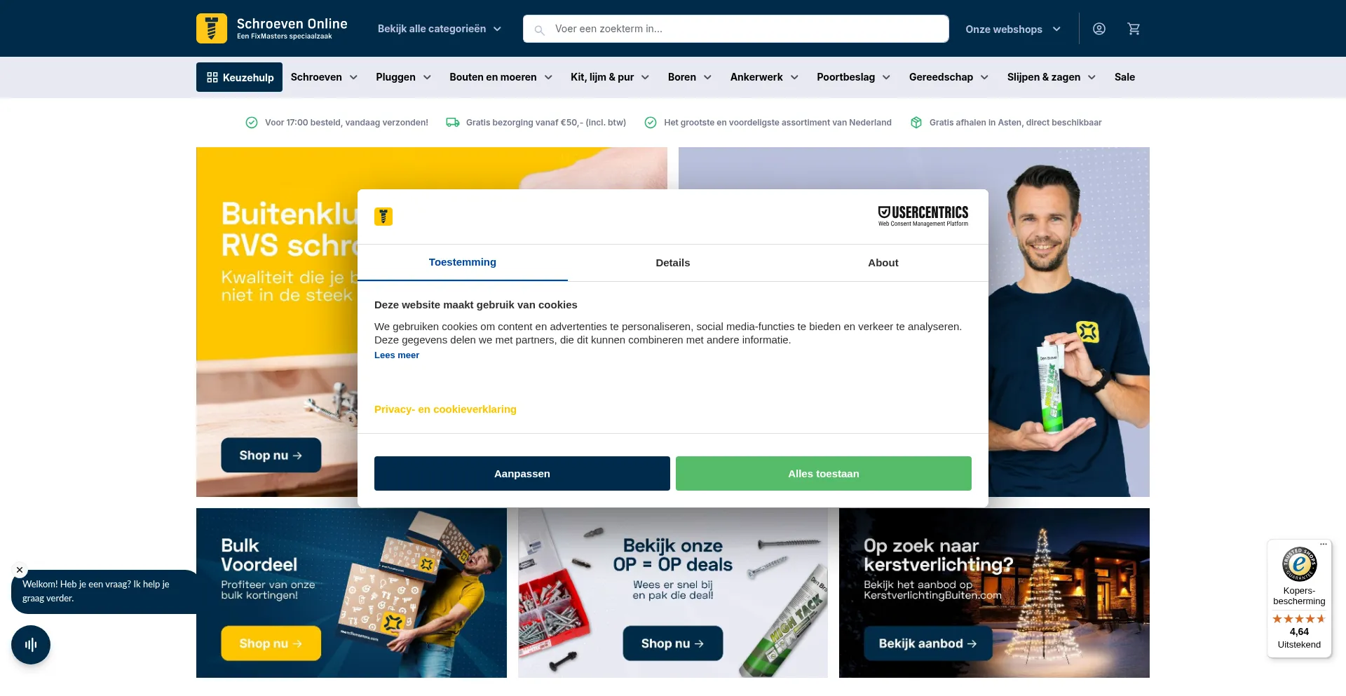 schroeven-online.nl 使用 Google Tag Manager 在其网站上添加和更新追踪代码(标签)。