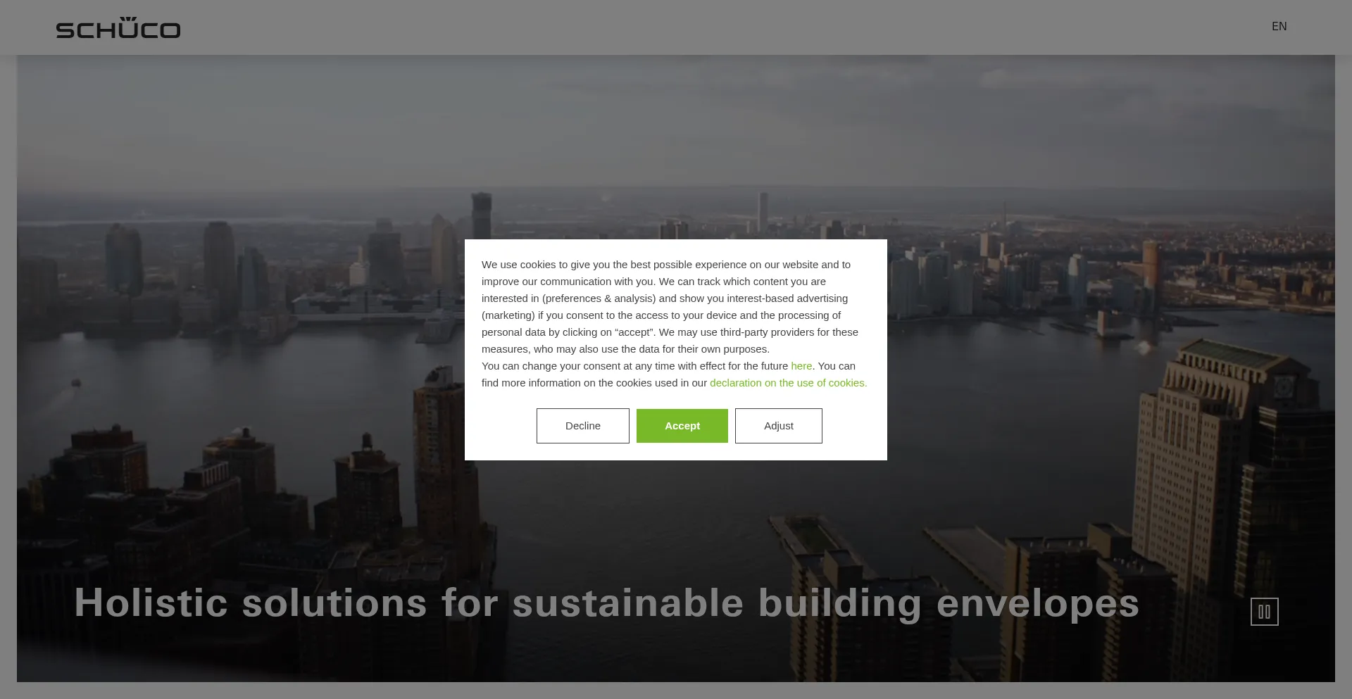 该网站实现符合GDPR或CCPA等隐私法规的cookie同意机制。这表明 schueco.com 遵守数据保护标准并为用户提供对个人数据收集实践的控制。