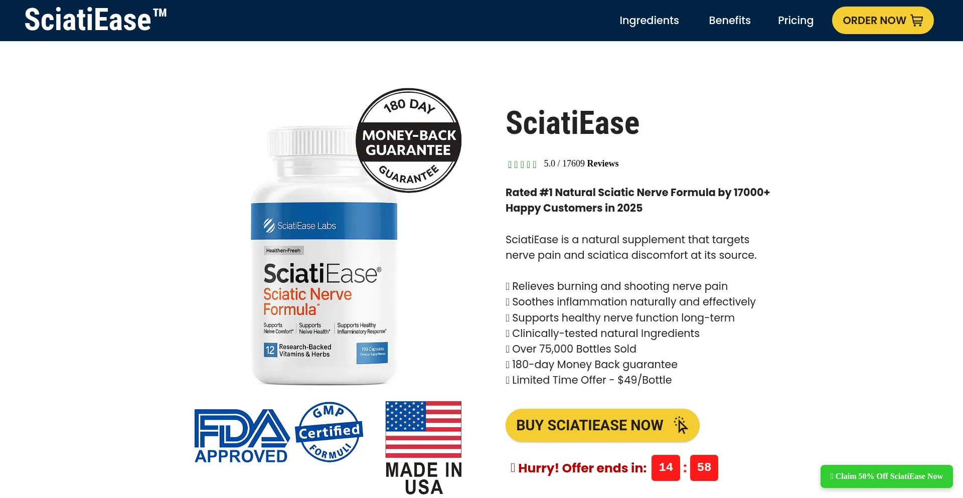SciatiEase is a natural supplement that targets nerve pain and sciatica discomfort at its source.