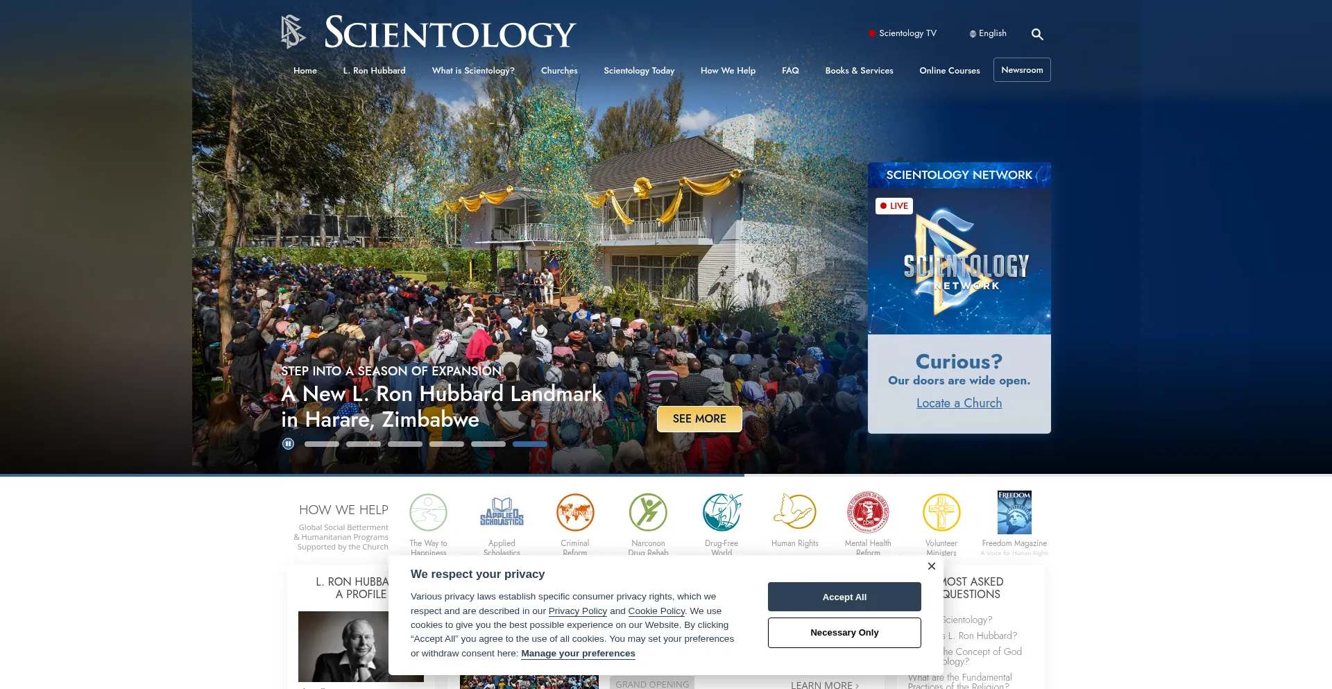 该网站实现符合GDPR或CCPA等隐私法规的cookie同意机制。这表明 scientology.org 遵守数据保护标准并为用户提供对个人数据收集实践的控制。