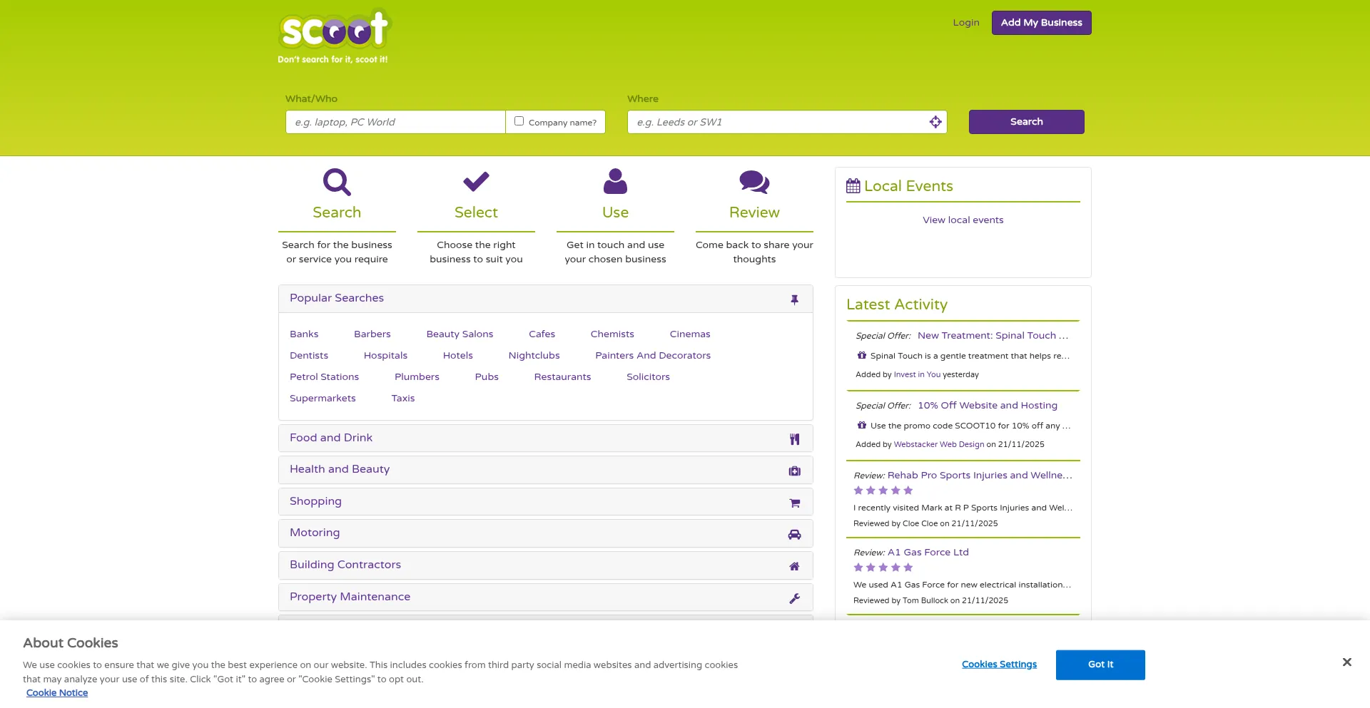 该网站实现符合GDPR或CCPA等隐私法规的cookie同意机制。这表明 scoot.co.uk 遵守数据保护标准并为用户提供对个人数据收集实践的控制。
