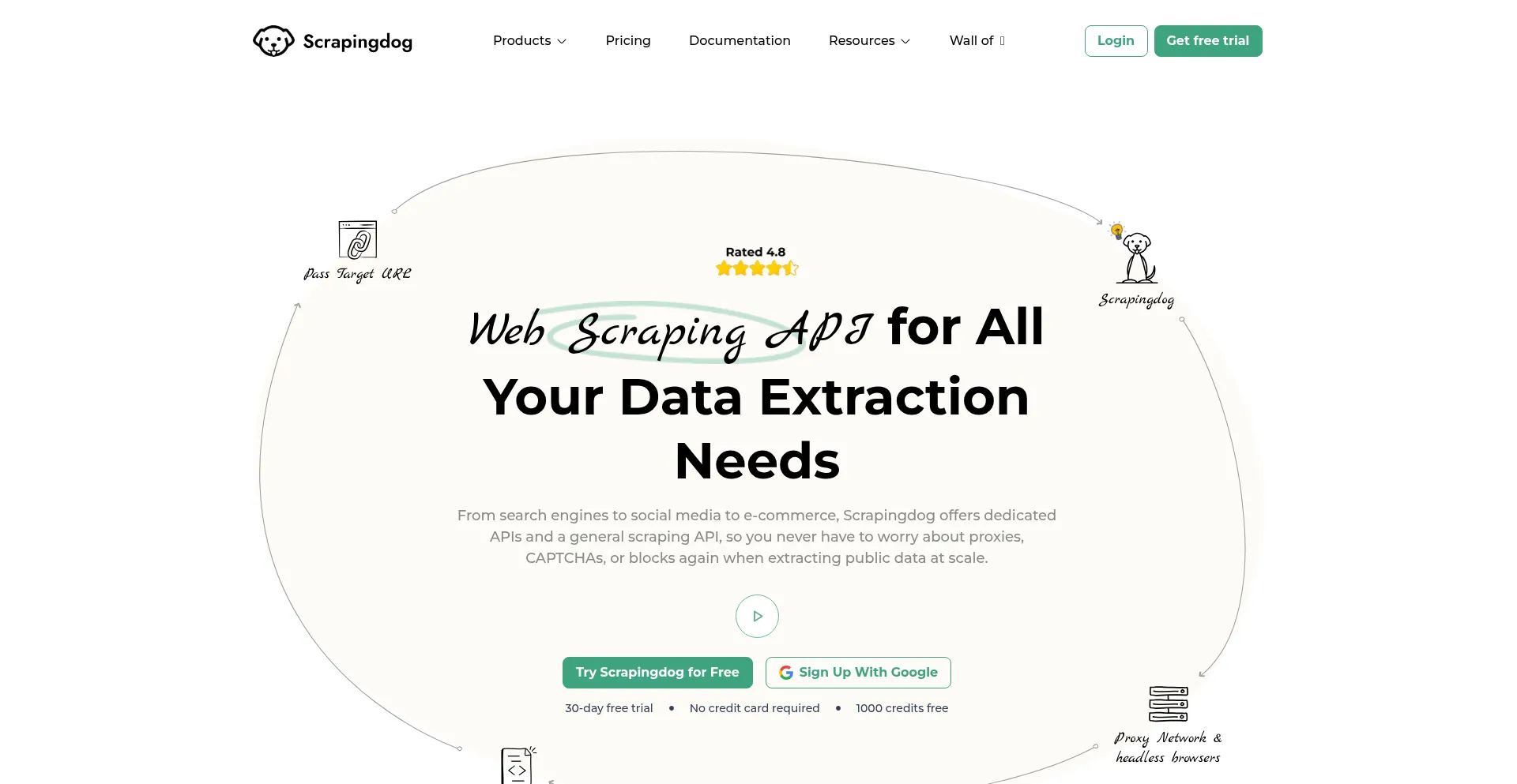 Scrapingdog is your all-in-one Web Scraping API, effortlessly managing proxies and headless browsers, allowing you to extract the data you need with ease.