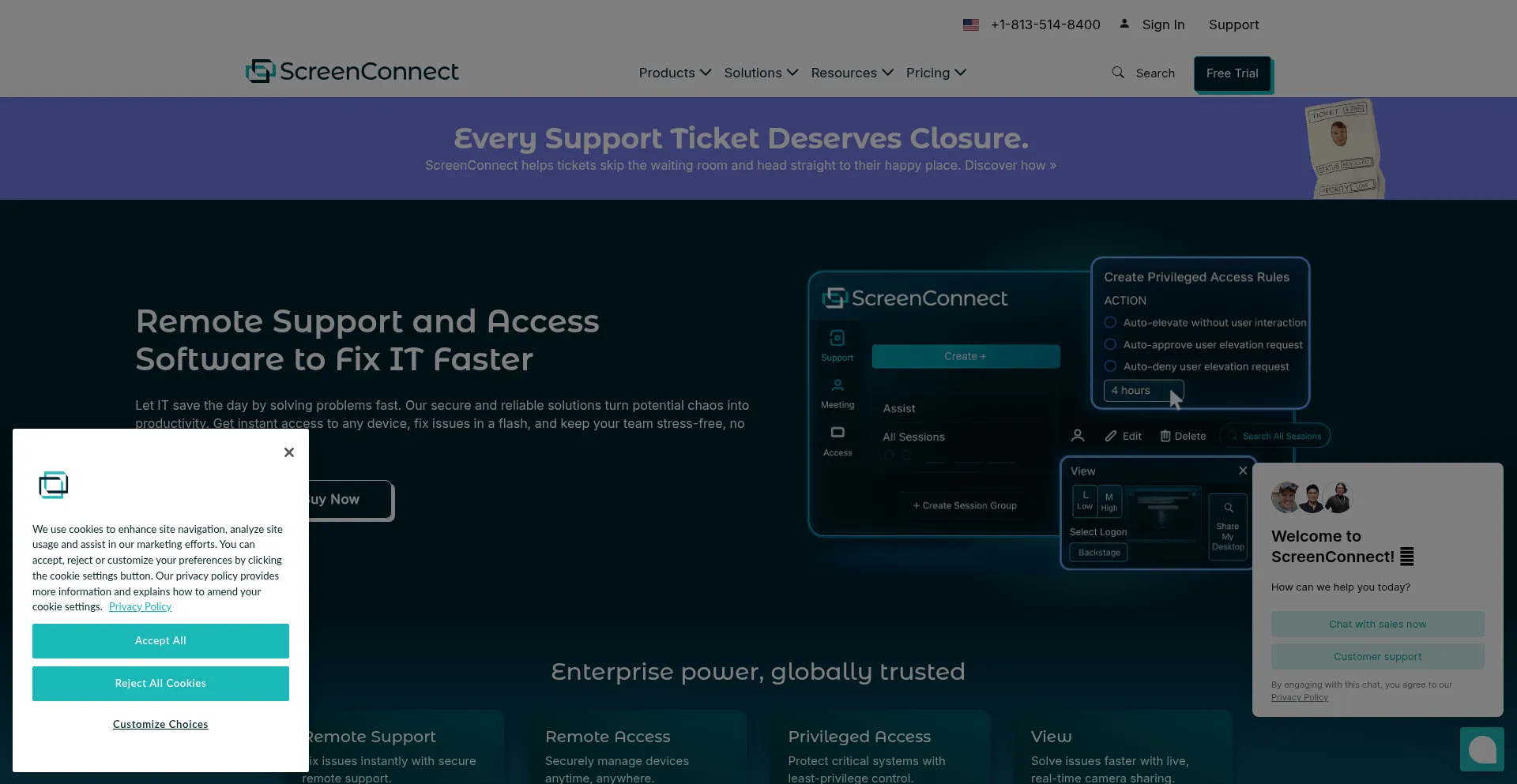 该网站实现符合GDPR或CCPA等隐私法规的cookie同意机制。这表明 screenconnect.com 遵守数据保护标准并为用户提供对个人数据收集实践的控制。