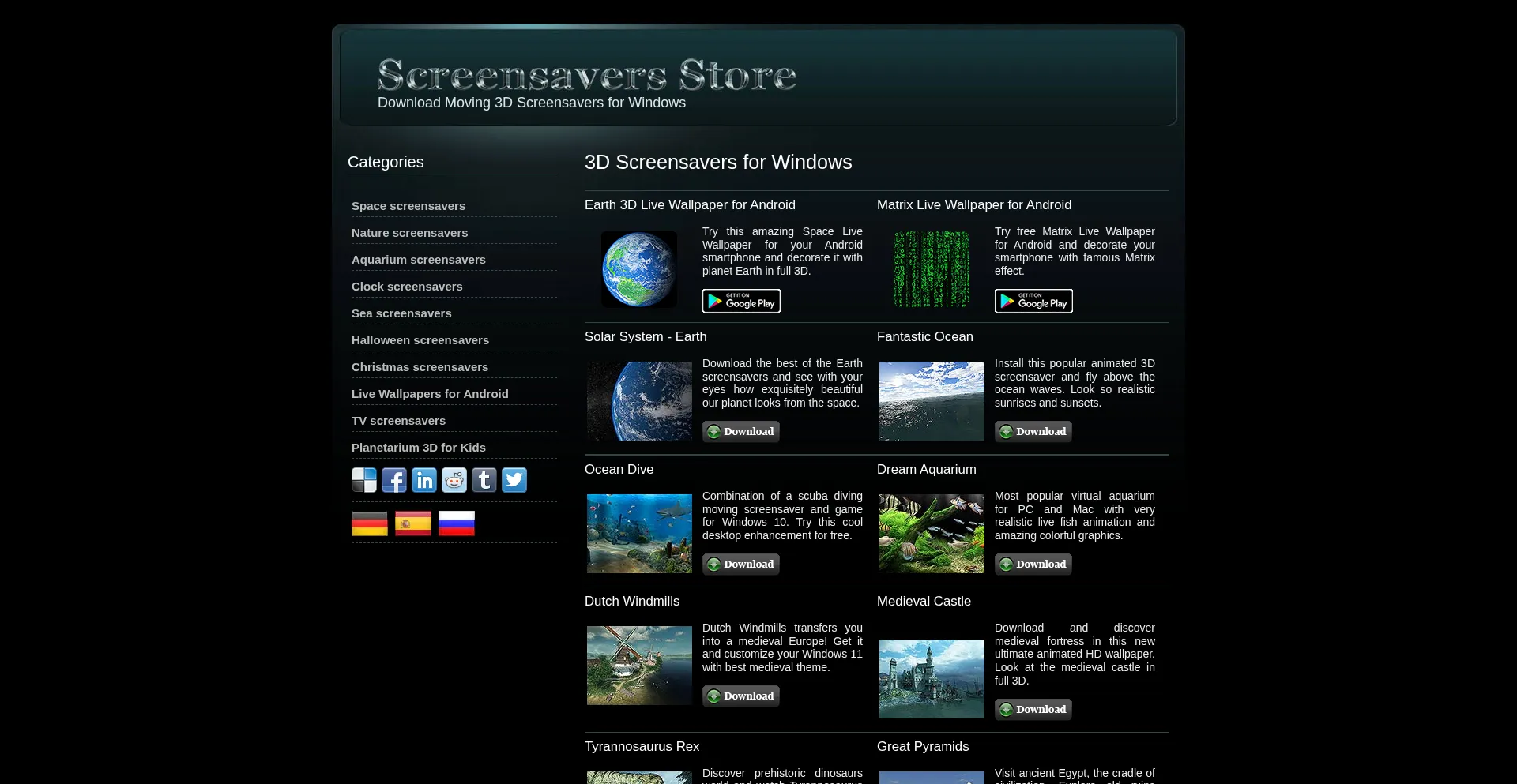 screensavers-store.com 提供 Android 设备移动应用程序,表明平台存在已扩展到网络服务之外。