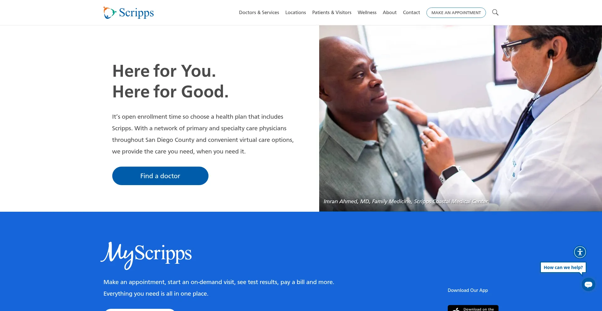 Scripps Health is a health system in San Diego where top doctors practice at hospitals, outpatient clinics, walk-in clinics, telehealth, urgent care and ERs.