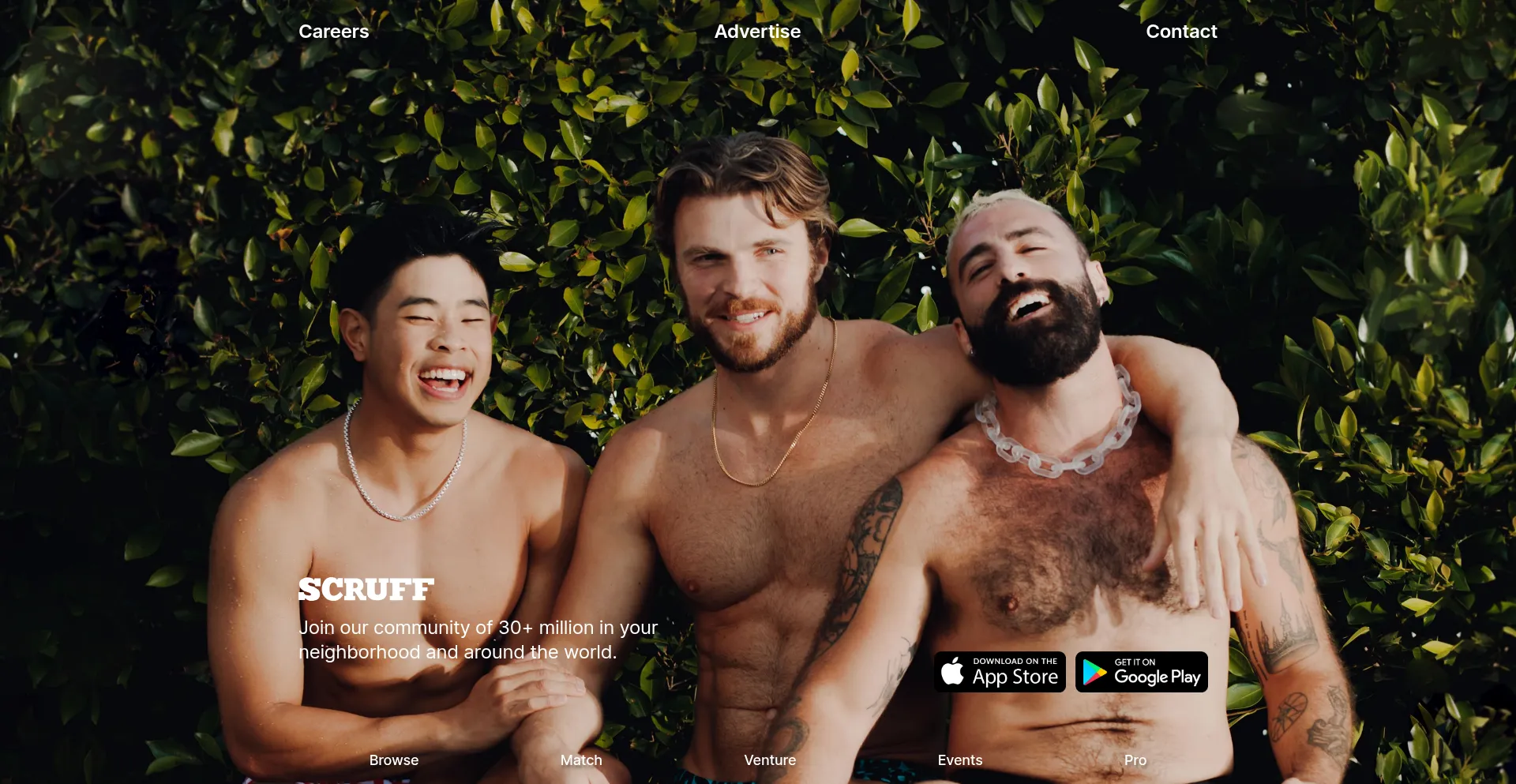scruff.com 提供 Android 设备移动应用程序,表明平台存在已扩展到网络服务之外。