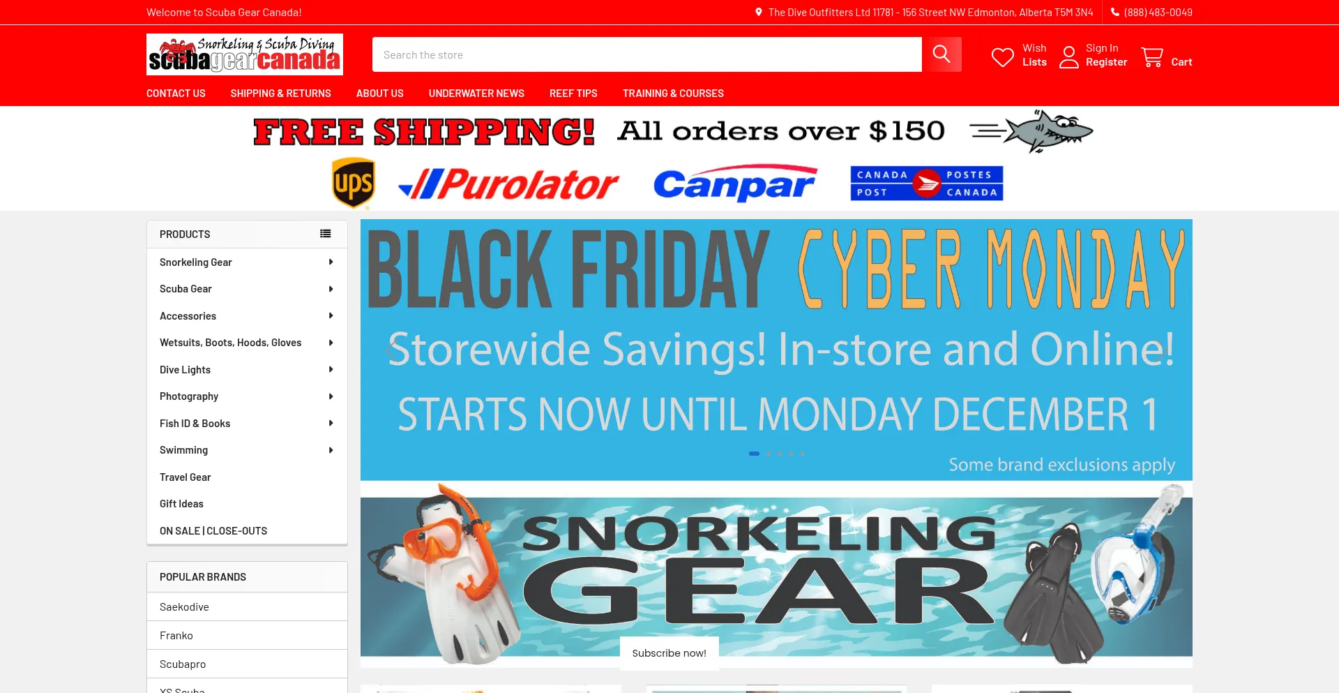 Free Shipping! For orders $150+. Buy high quality snorkel gear and scuba gear at great prices. Huge variety and selection for snorkeling and scuba diving. We ship from Canada to...
