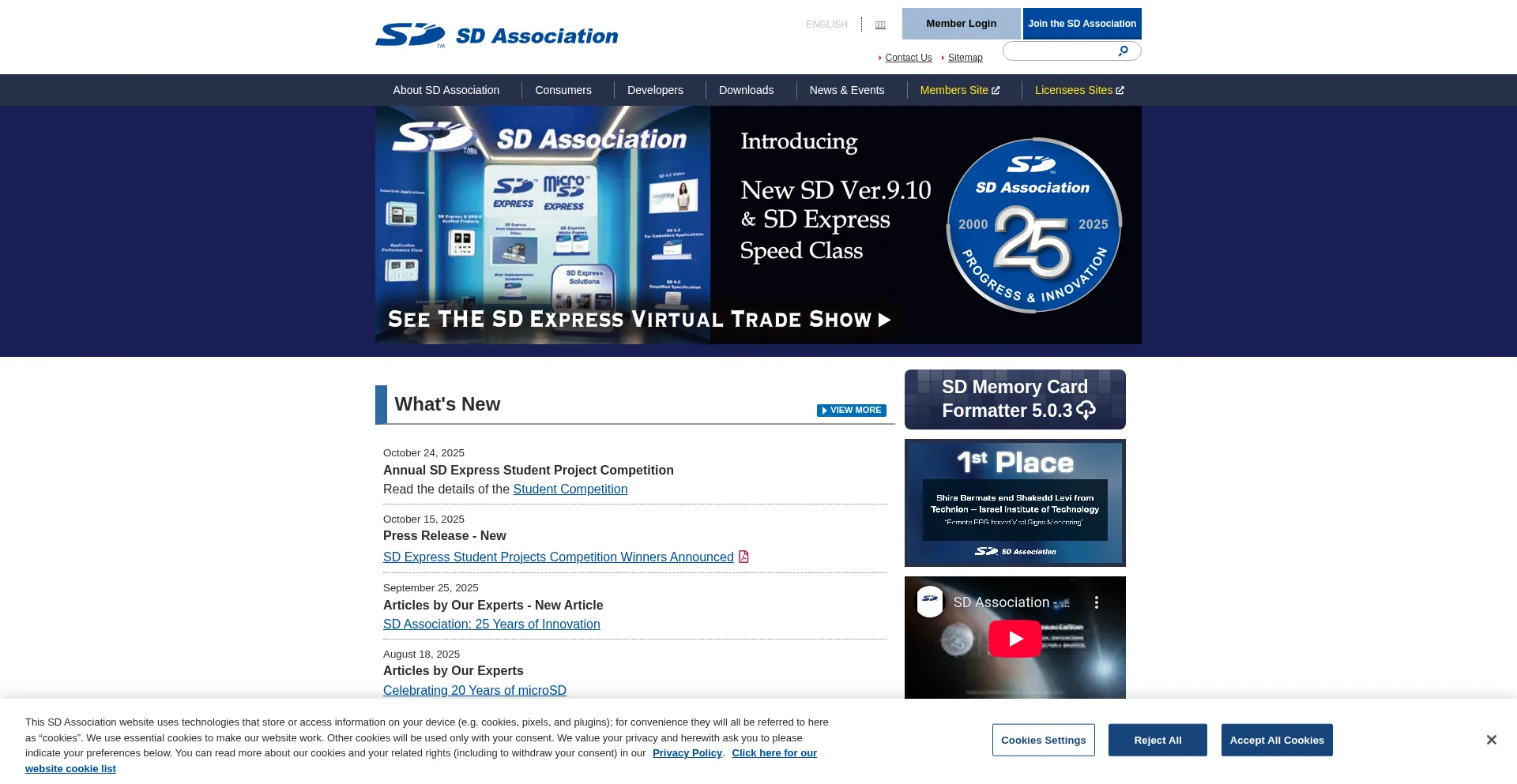 该网站实现符合GDPR或CCPA等隐私法规的cookie同意机制。这表明 sdcard.org 遵守数据保护标准并为用户提供对个人数据收集实践的控制。
