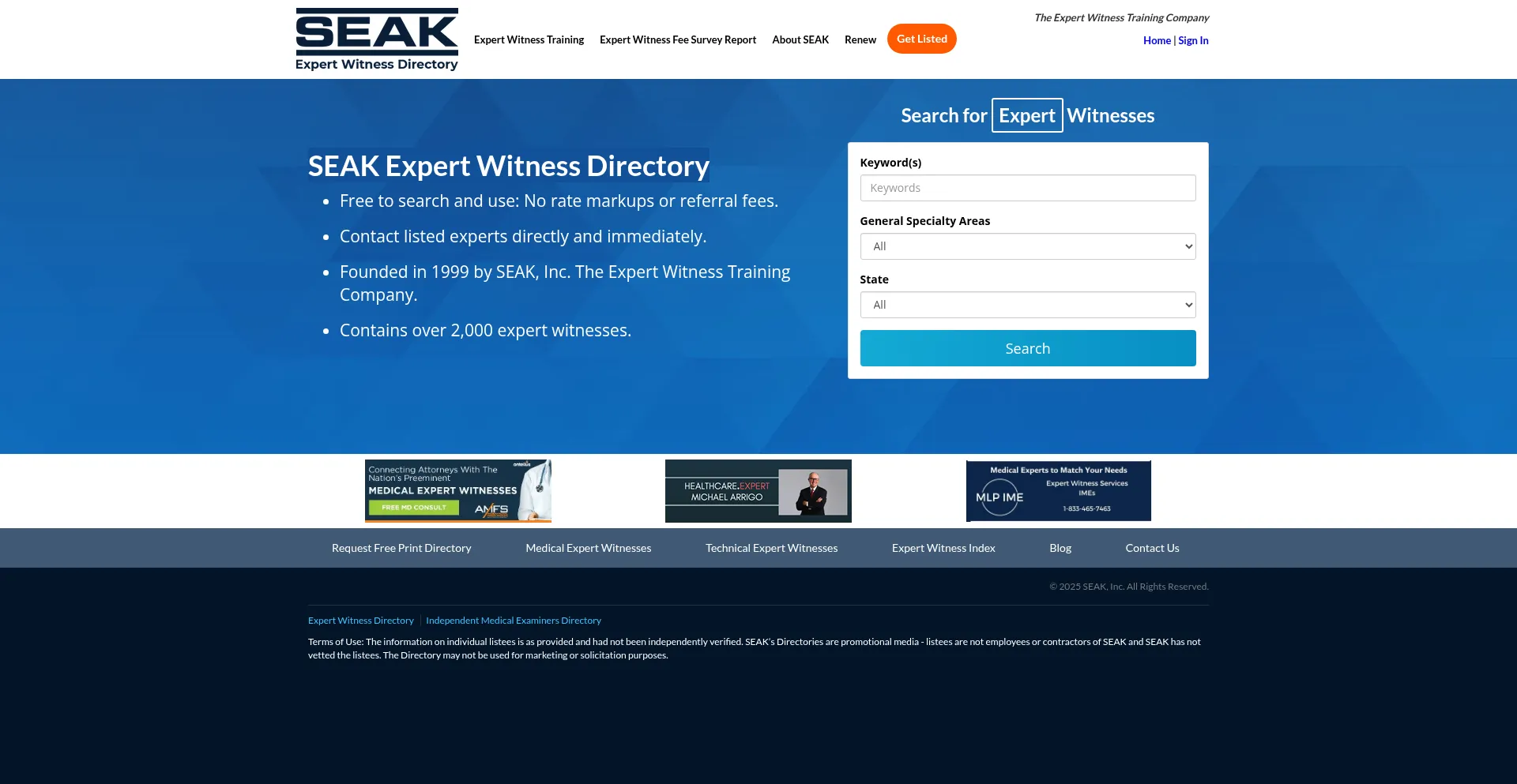 SEAK is the #1 Rated Expert Witness Directory. Contains over 2,000 Experts. Free to Search. Search by Specialty, Name, or Location. Attorneys contact experts directly, no middle...