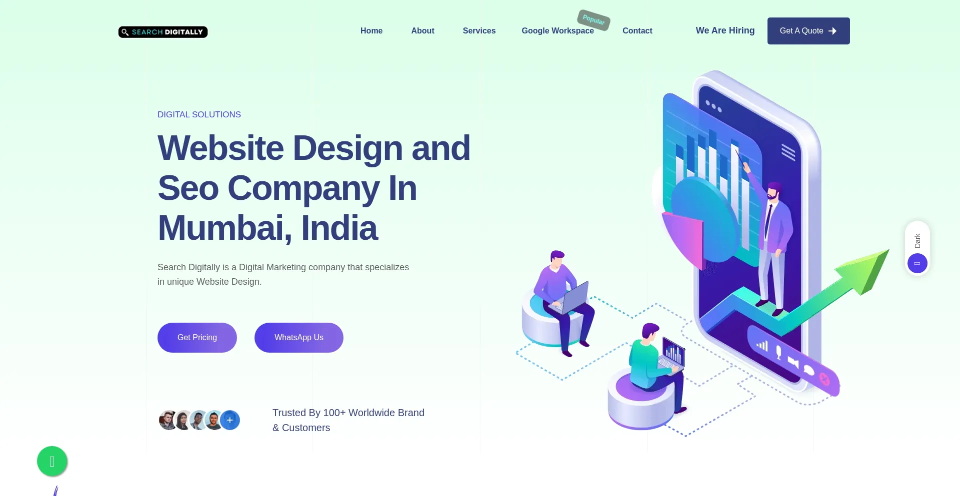 searchdigitally.com 使用 Bootstrap,这是一个广泛采用的开源响应式网页开发框架。Bootstrap 通过标准化组件和样式实现移动友好界面的高效创建。