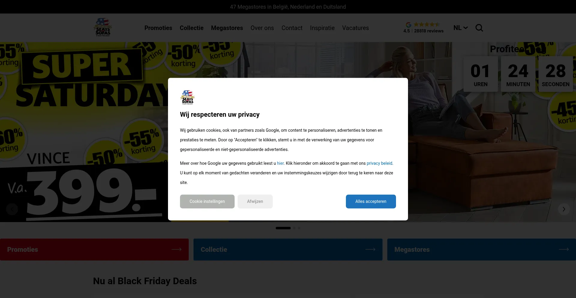 网站上存在社交媒体链接表明 seatsandsofas.be 在社交媒体上维护官方账户,这是可信度和参与度的积极信号。