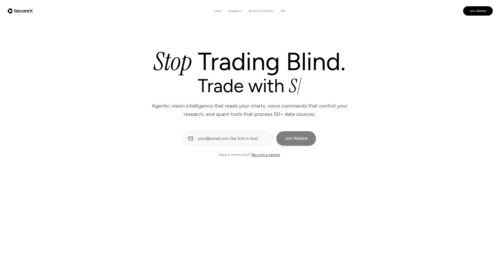 SecantX AI is a vision-first spatial AI for traders. We democratize quant-level trading by providing a multimodal AI that overlays existing platforms (CEX/DEX/Terminal) and give...