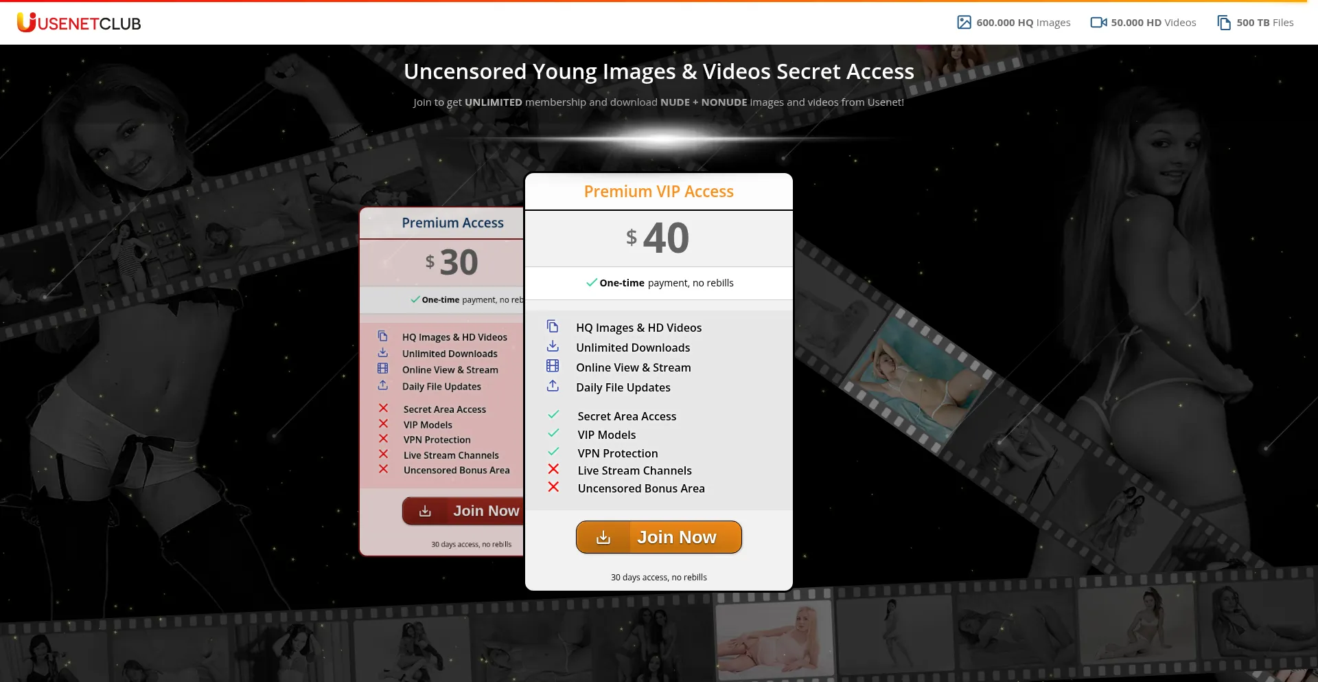 Buy premium access to download images and videos from Usenet.