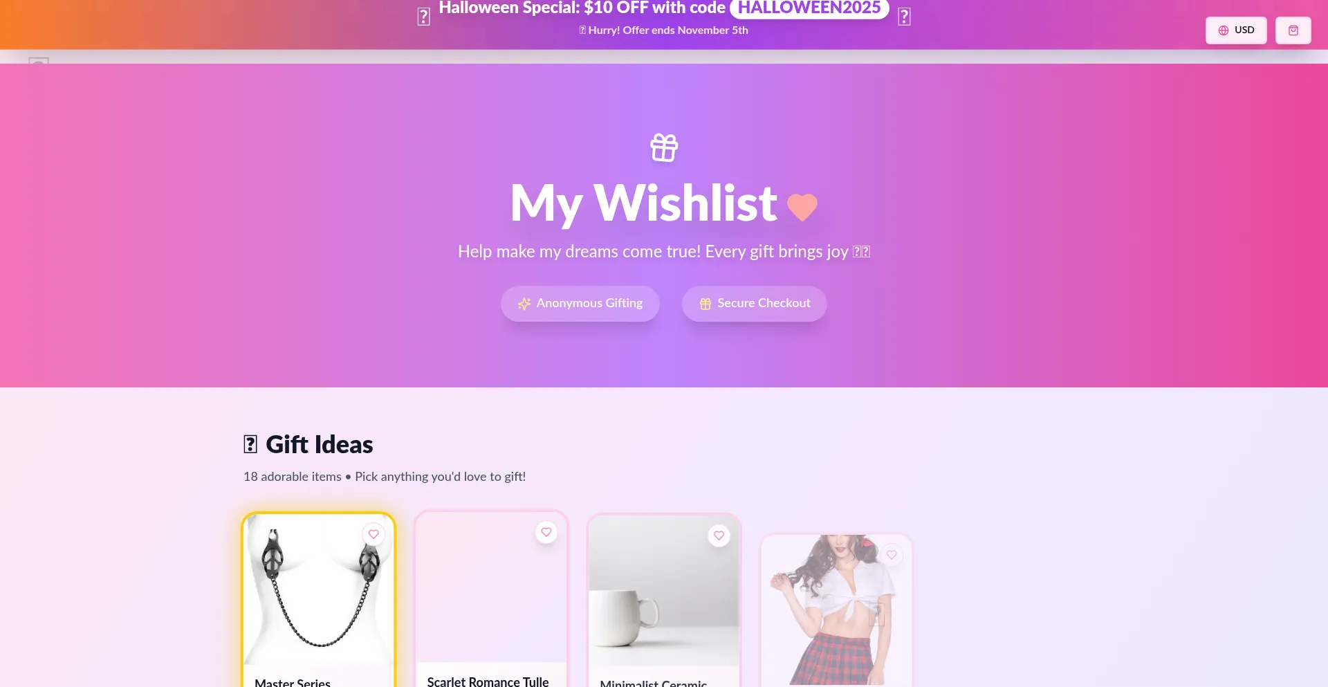 Create your dream wishlist and let friends and family anonymously send you the perfect gift. Your curated wishes, delivered with joy.